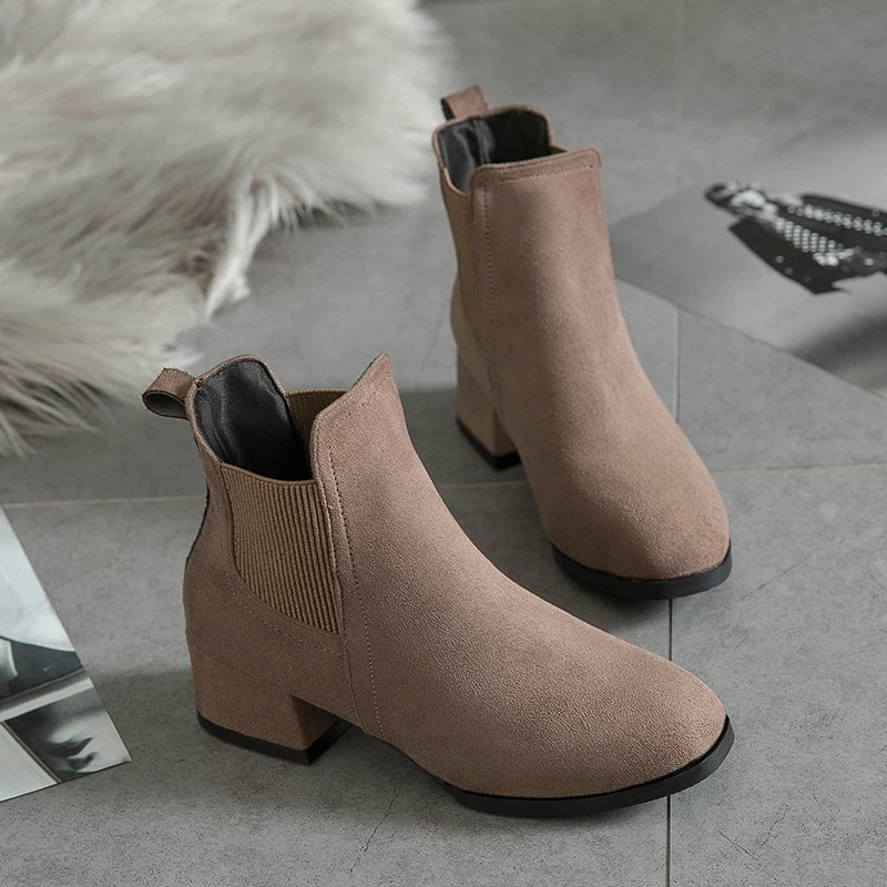 Женские замшевые ботинки челси, теплые ботинки на среднем каблуке, байкерские ботинки для прогулок, на платформе, зима 2021