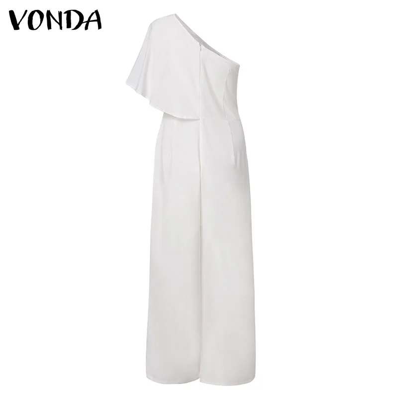 Женские пикантные комбинезоны с коротким рукавом на одно плечо и широкими штанинами, винтажные комбинезоны с принтом VONDA, ретро брюки палаццо, брюки, комбинезоны