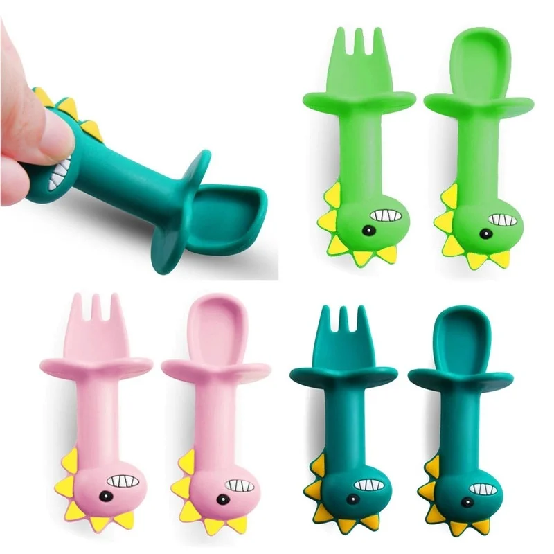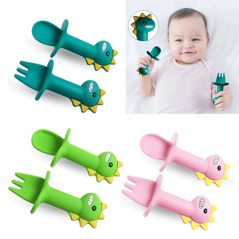 Набор ложек и вилок для обучения детей, без бисфенола А, из мягкого силикона, дополнительная посуда для кормления, аксессуары для новорожденных, Прорезыватель для зубов