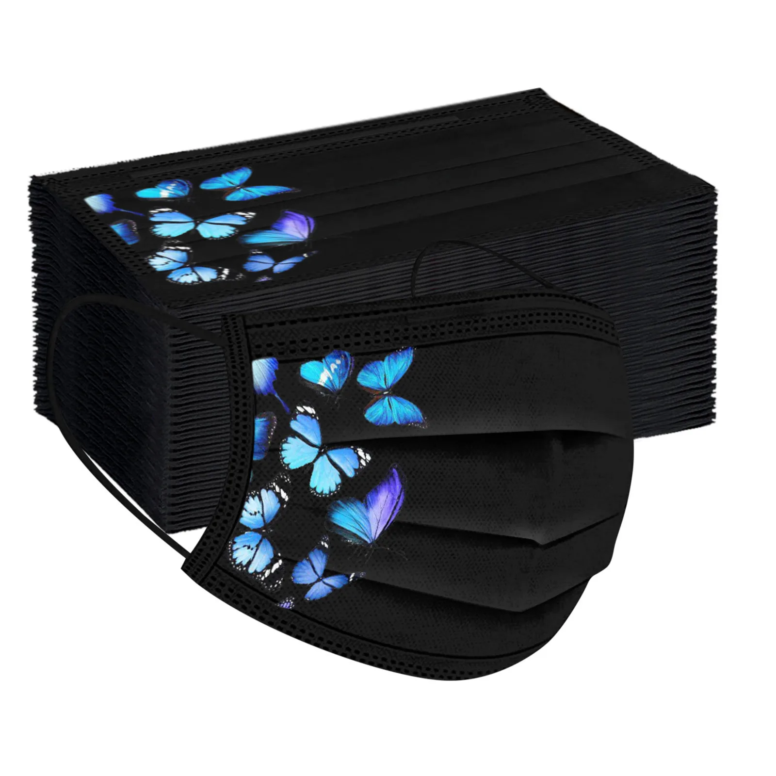 Маска для лица одноразовая с принтом бабочек для мужчин и женщин, маска промышленная 3-слойная, с заушными петлями, черная, маска для лица, 50 шт.