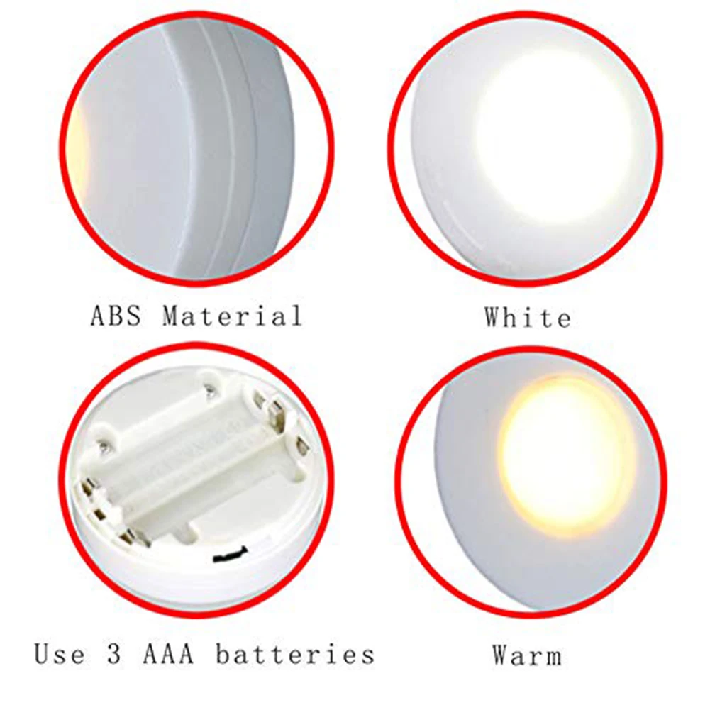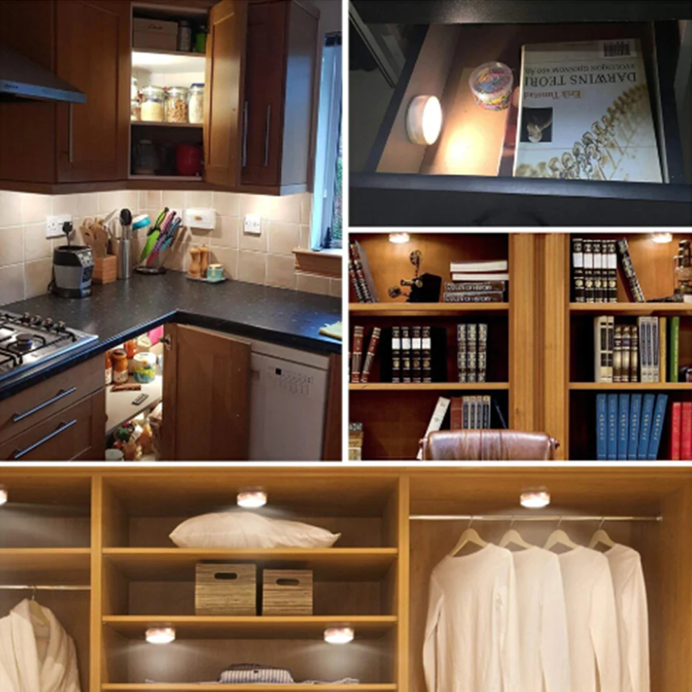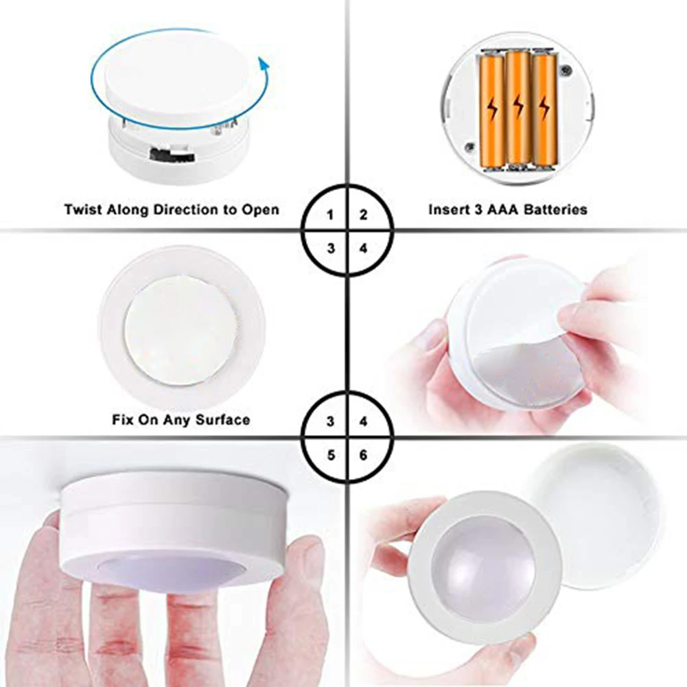 5. Простая установка: приклейте светильник шайбы к поверхности шкафа с помощью прикрепленной клейкой ленты за считанные секунды. Легко устанавливается и снимается.