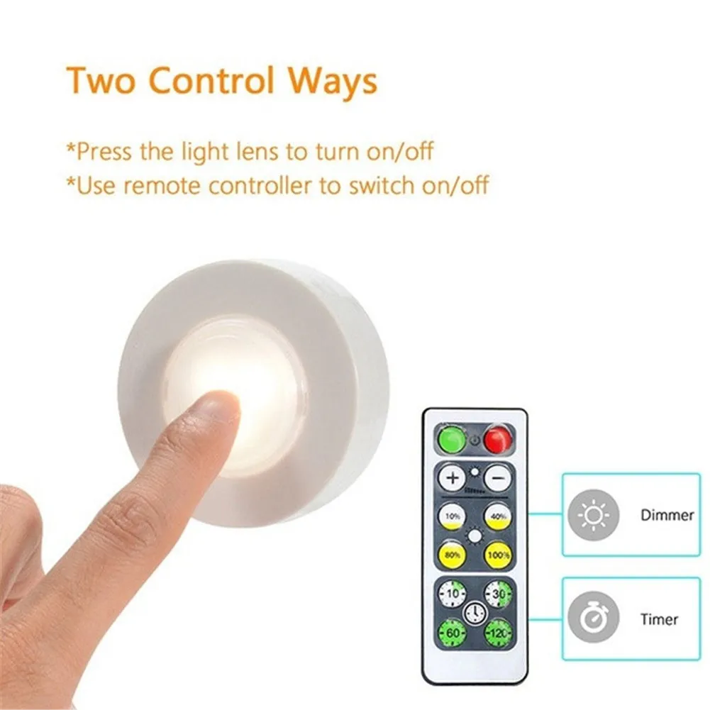 1/3/6 шт. маленький ночной Светильник Беспроводной Светодиодный точечный светильник s Шкаф светильник s Батарея приведенный в действие с пультом дистанционного управления Кухня под шкаф светильник ing встраиваемые тёплого/белый