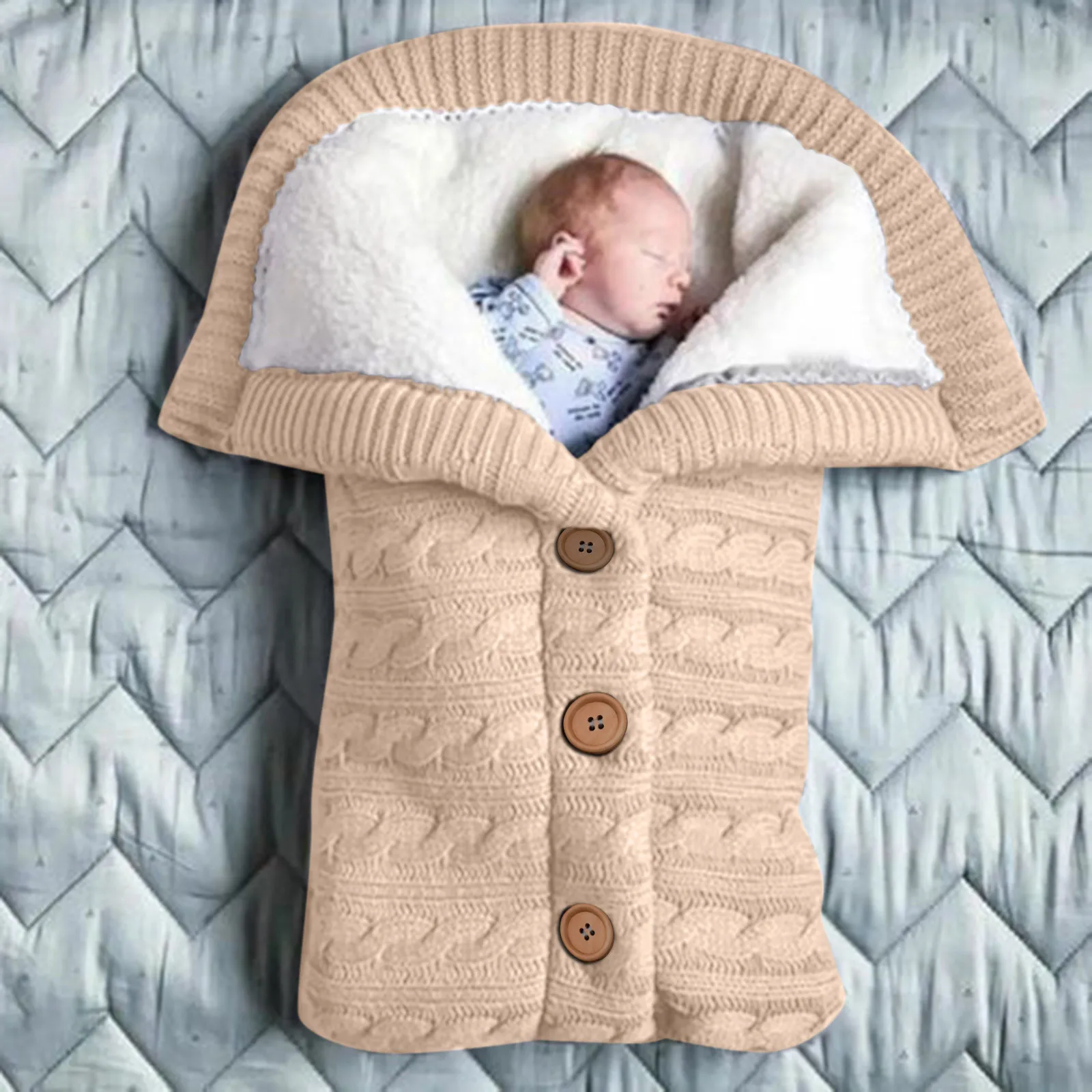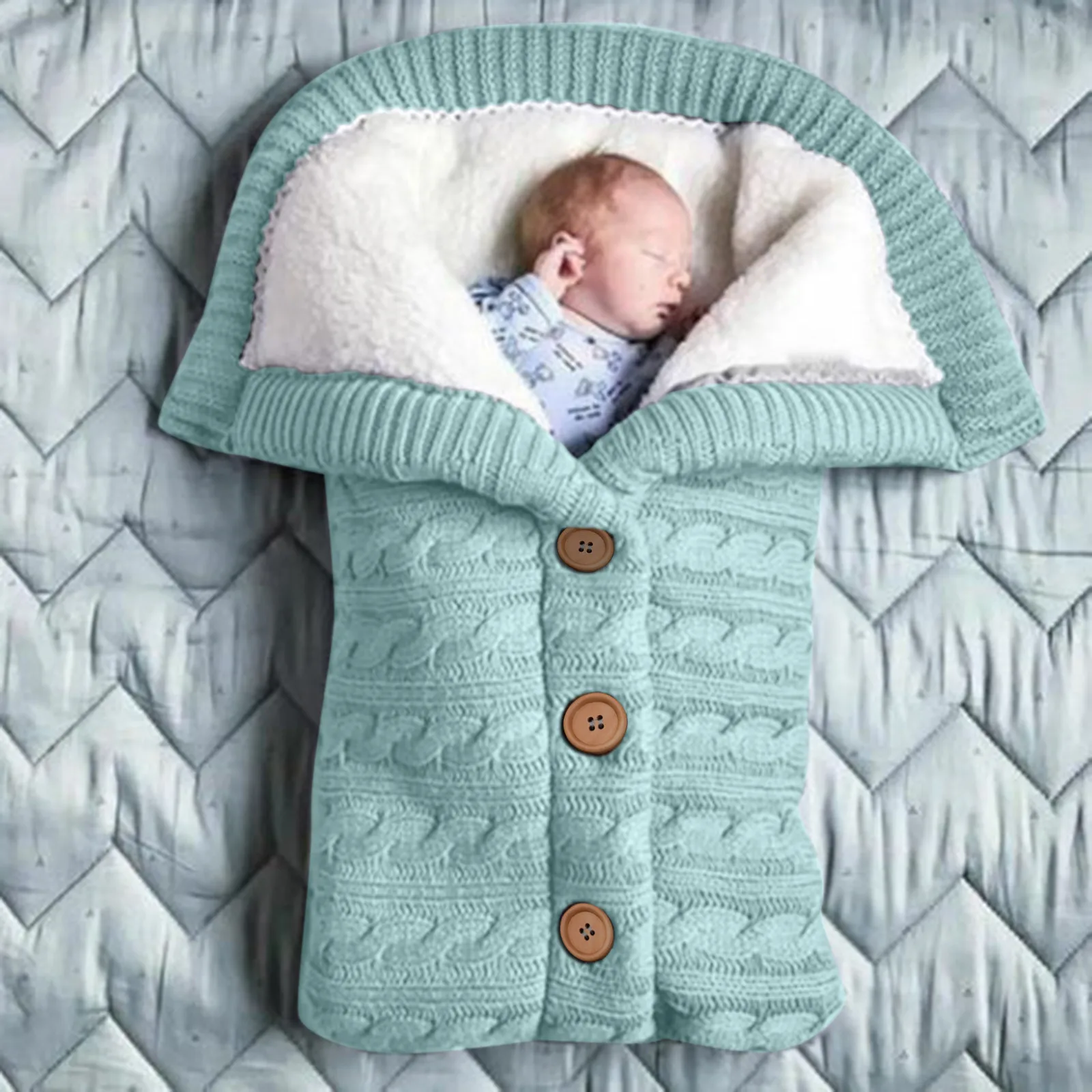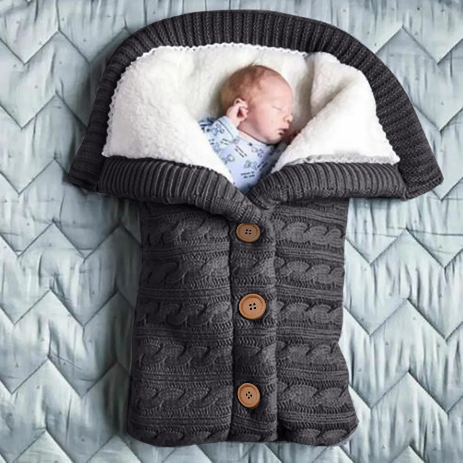 Детский зимний теплый спальный мешок с пуговицами, вязаная флисовая накидка для новорожденных, пеленальная накидка, одеяло для малышей, спальный мешок для детской коляски