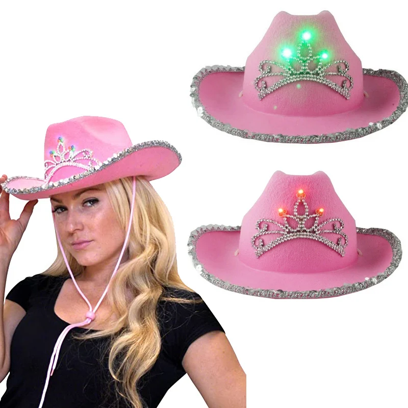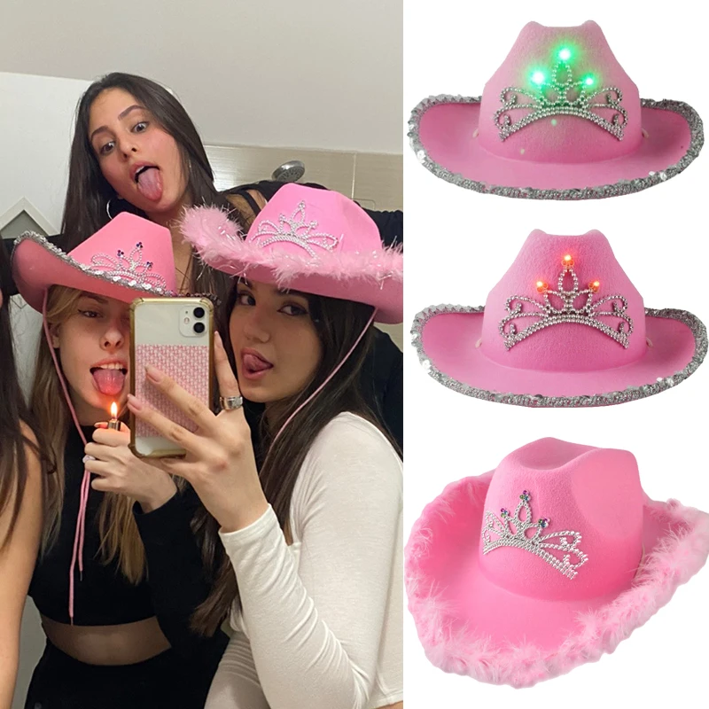 Светящаяся тиара, ковбойская шляпа в западном стиле, розовая Женска...
