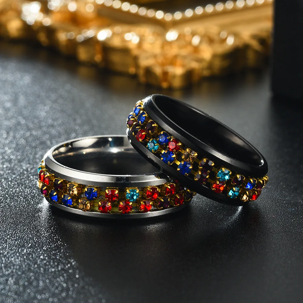 8*2 мм радужные стразы с мощеной цепочкой, кольцо для защиты от беспокойства для женщин, вращающееся кольцо для медитации, уличная одежда, размеры 6-12