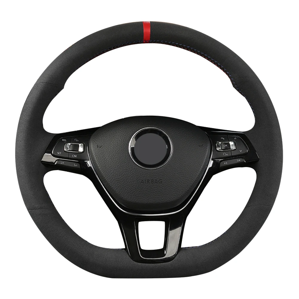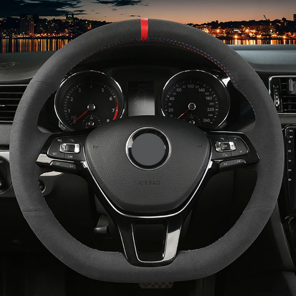 Черная замша Вручную прошитый чехол рулевого колеса автомобиля для ...