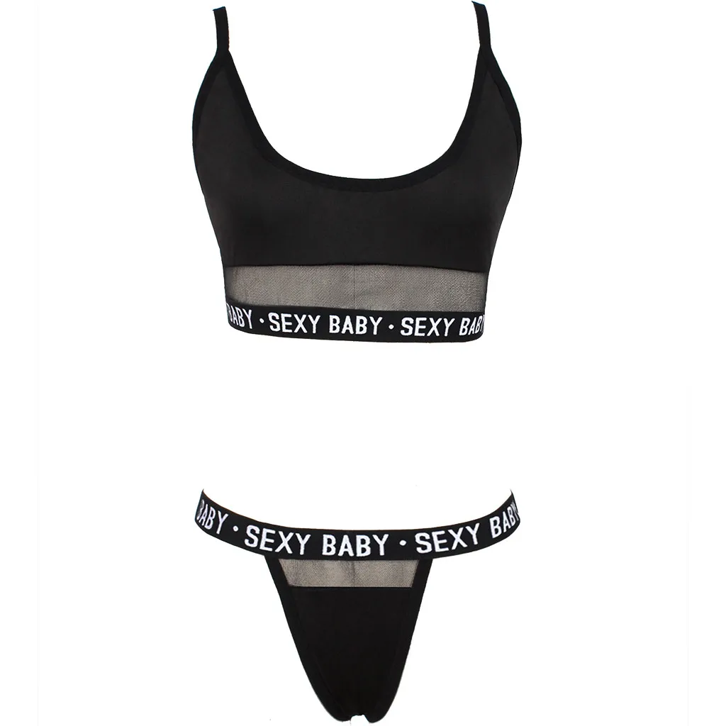 Модный женский комплект нижнего белья с буквенным принтом в стиле пэчворк
