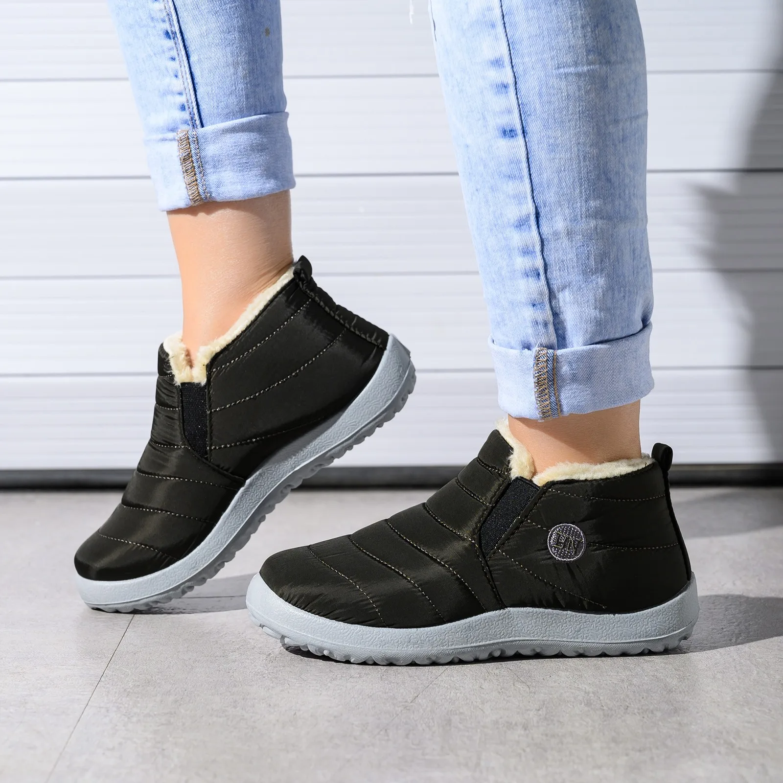 Женские ботинки, зимняя обувь, женская зимняя обувь на плоской подошве, водоотталкивающая, бархатная, теплая, короткая, искусственная плюшевая, сохраняющая тепло обувь для женщин