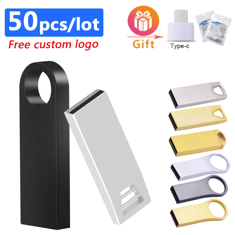 50 шт.лот брелок USB флеш-накопитель 64 Гб металлический флеш-накопитель 32 ГБ 16 ГБ 8 ГБ 4 ГБ Флешка USB карта памяти водонепроницаемый флеш-накопитель с логотипом