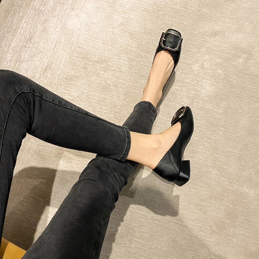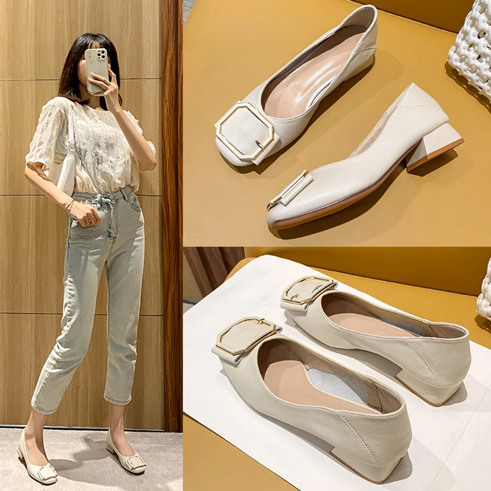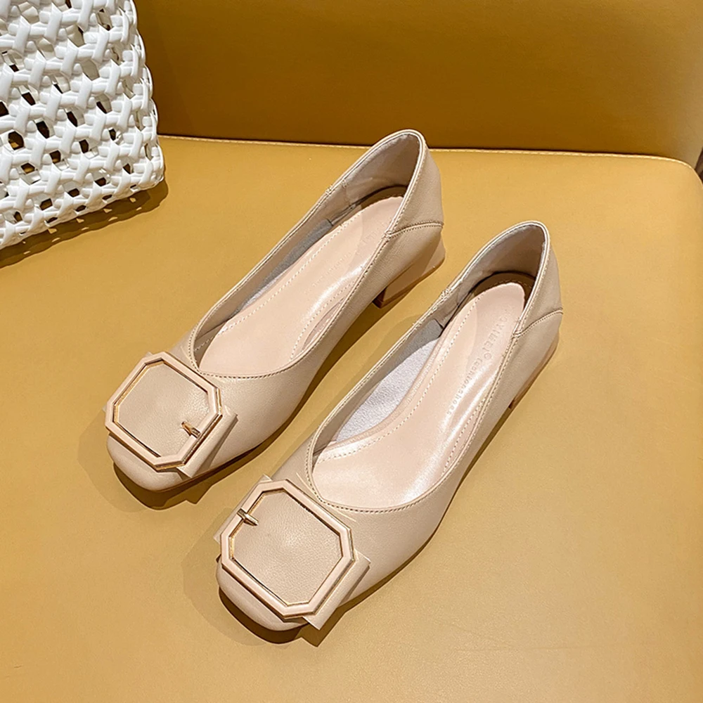 Осенняя женская обувь famнаклеа из натуральной кожи 2021, низкие туфли на каблуках, розовые, черные, белые