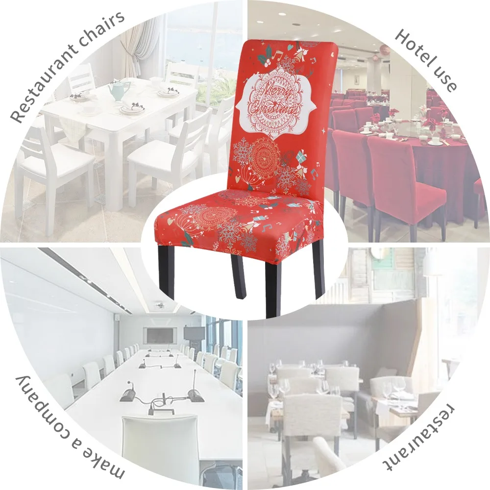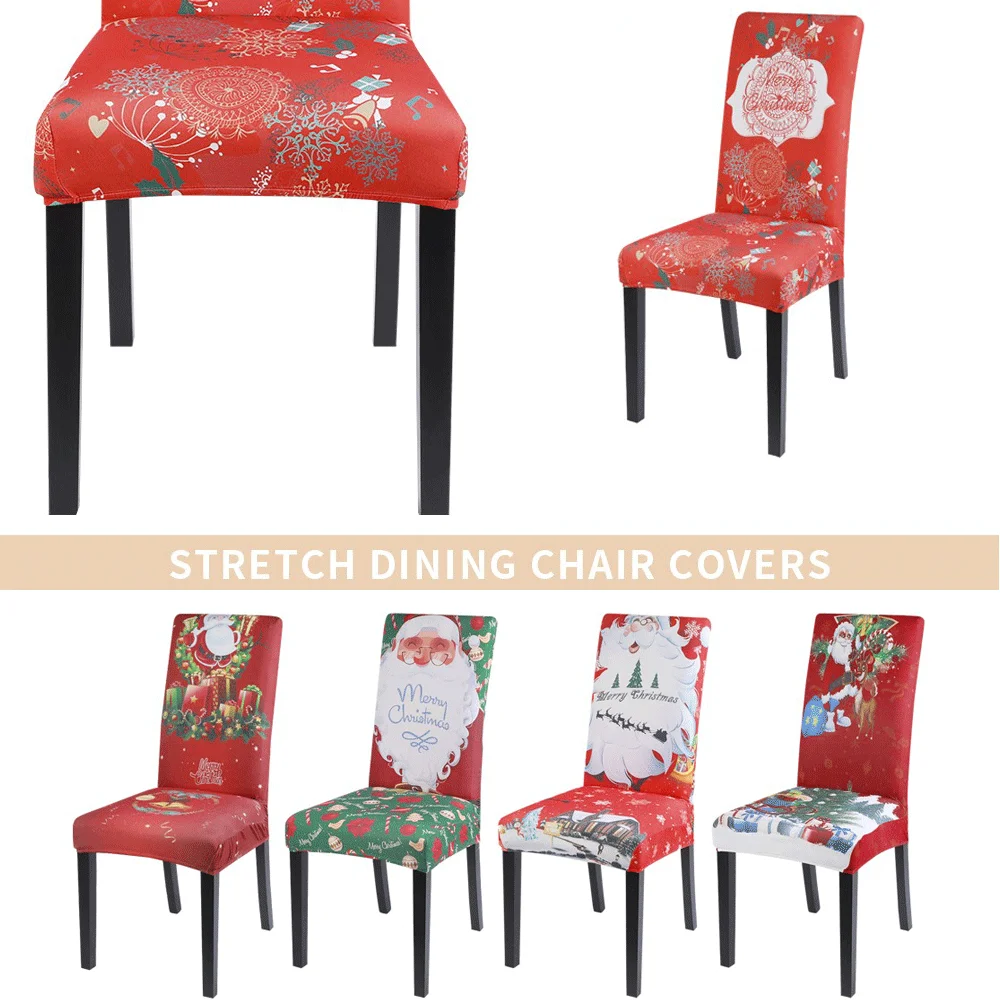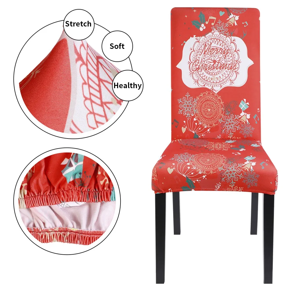 Чехол на стул с рождественским принтом, эластичный чехол из спандек...