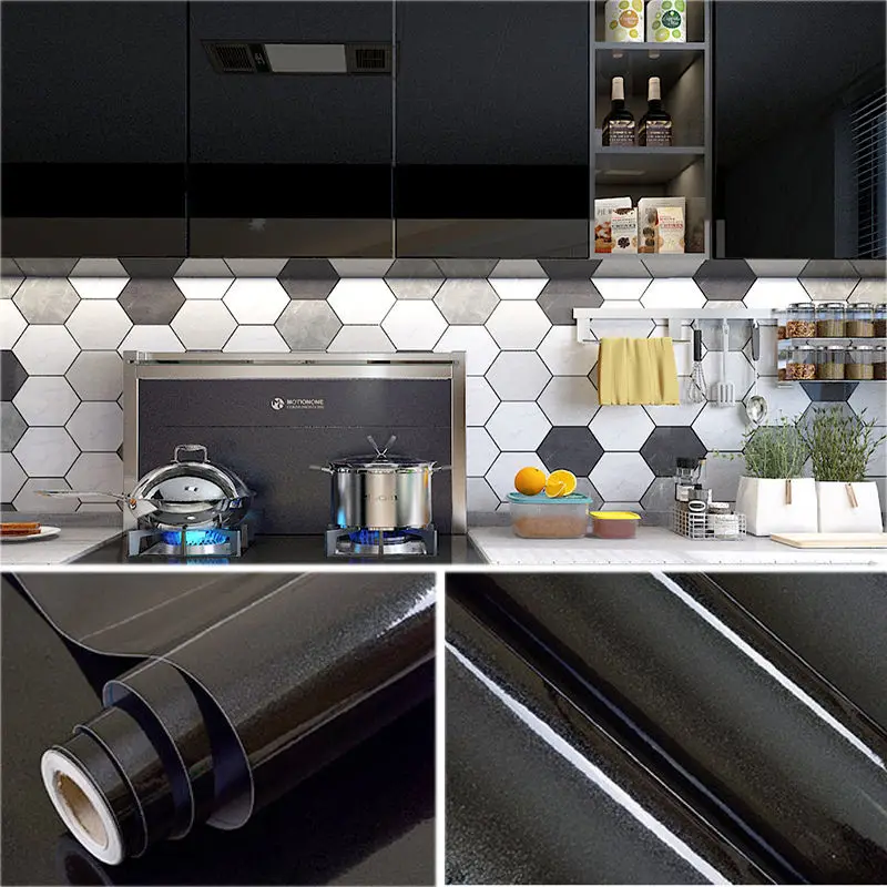 Пленка из ПВХ с жемчугом для самостоятельной сборки, водонепроницаемые обои для комнаты, самоклеящиеся черные и белые наклейки для гардероба, кухни, блестящие наклейки на стену в виде мебели
