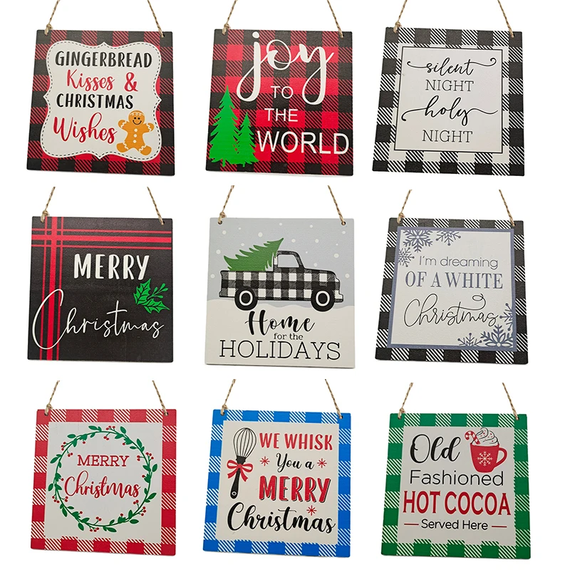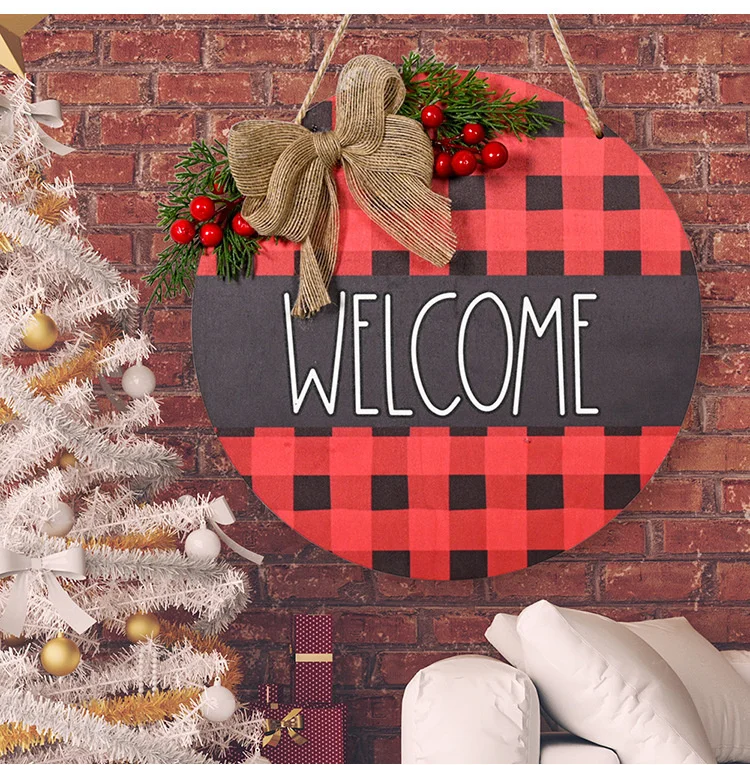 Деревянный венок в клетку для дома и магазина, навесной знак приветствия на новый год 2022, праздничные украшения, подарок для творчества, Рождественское украшение