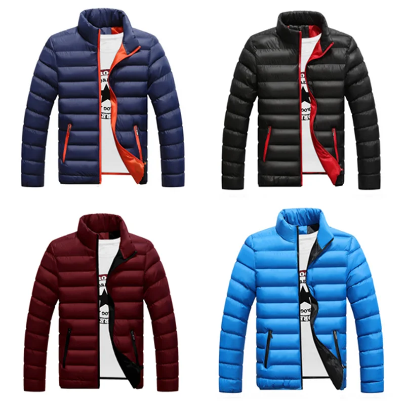 Новая теплая Толстая мужская зимняя куртка, повседневная мужская куртка, однотонная Мужская ветрозащитная хлопковая зимняя куртка с воротником
