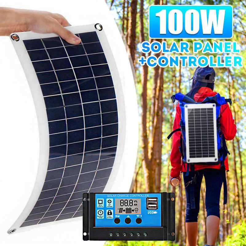Гибкая солнечная панель, 100 Вт, 30 а, с двумя USB-портами