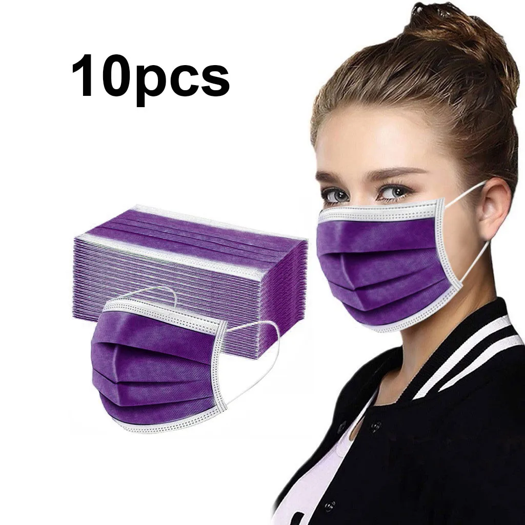 10 шт. одноразовые нетканые 3-слойный фильтр Маска Цвет: фиолетовый...