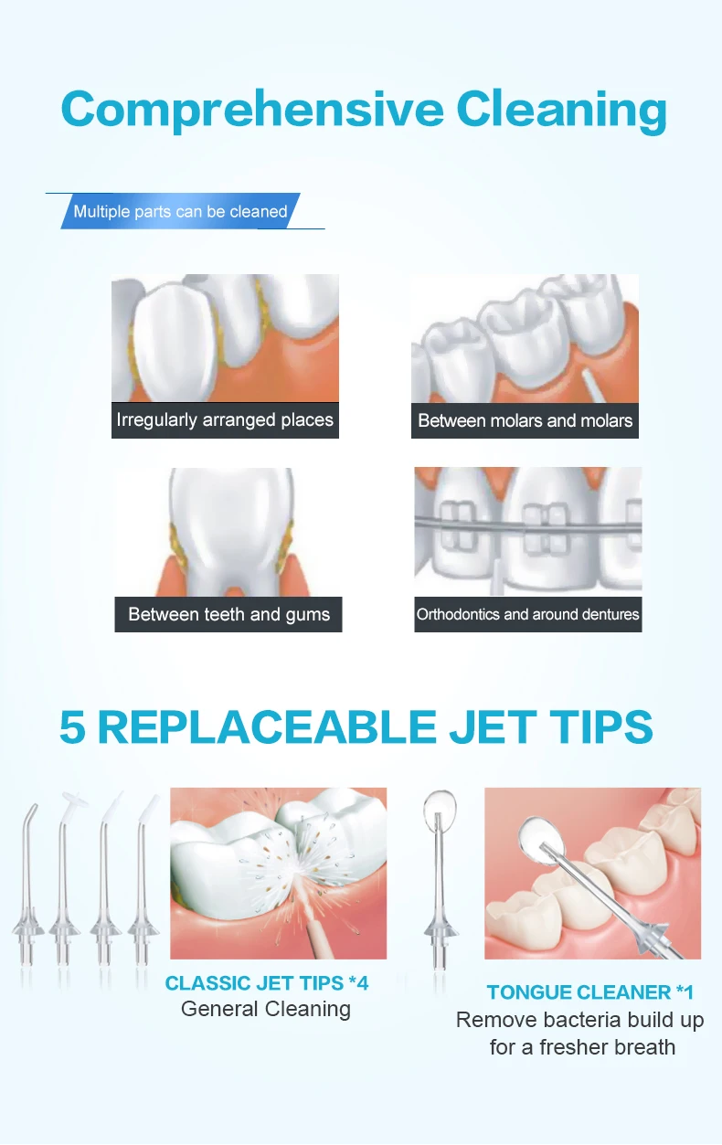 Быстрая доставка. Продукт работает, поставляется с USB-C кабелем для зарядки. Хотели бы получить больше информации о сопла (сопла) и адаптерах, прилагаемых силиконовым белым цветом. Нужно было найти полезность каждого, потому что в руководстве нет информации о них. Что кажется лопатой, это очиститель языка. Подумайте о адаптерах, которые носят подтяжки, это мой чехол, но не такой, как на изображениях, смотрите поиск. Обратитесь к моему стоматологу для уточнения, так как информация отсутствует в руководстве или в описании товара.