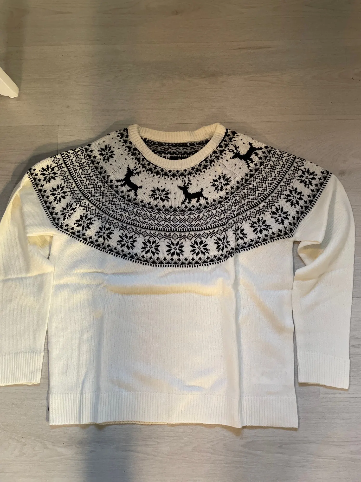Свитер неплохой. Доставка в Польшу быстрая. Размер свитера S подойдет на европейский размер между S и M ( объем груди не больше 90 см). Если вы носите европейский М, то будет совсем в обтяжку. Немного колется, нитки не торчат, но швы неровные. Рисунок очень красивый, из-за него и брала.