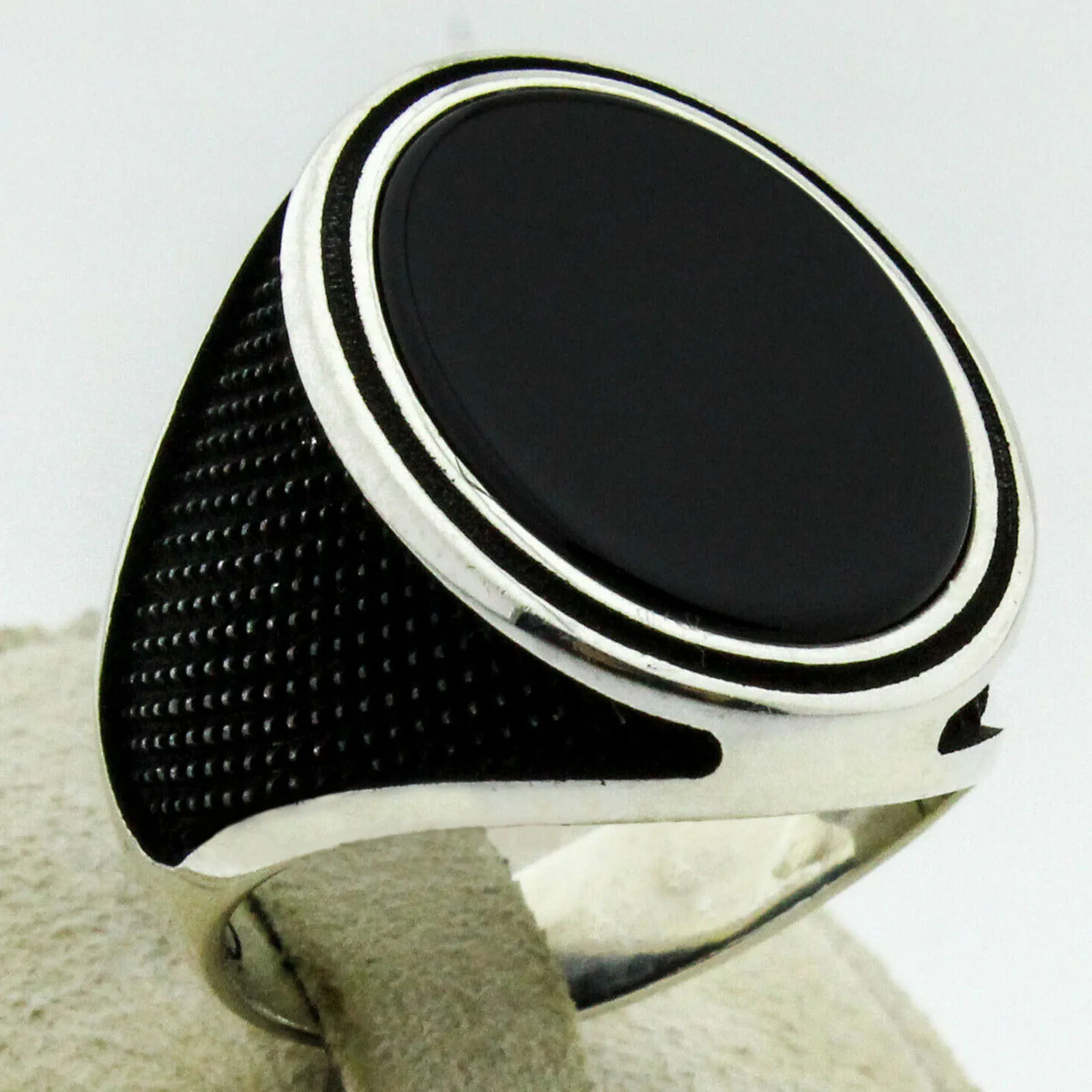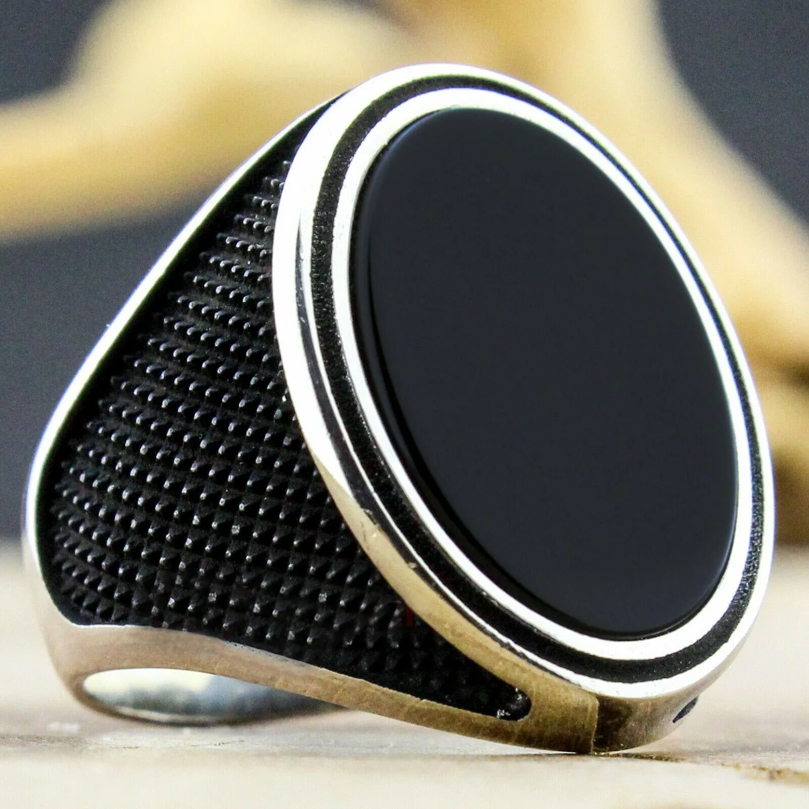 Мужское кольцо в стиле панк, инкрустированное овальным черным крист...