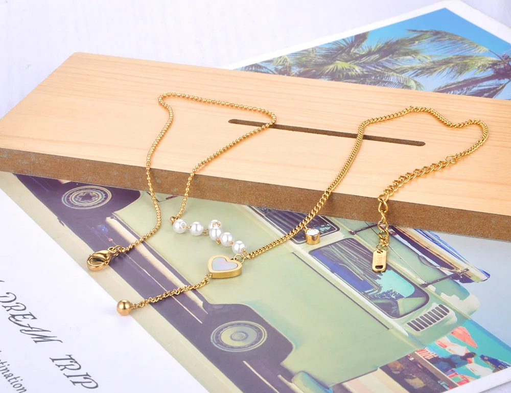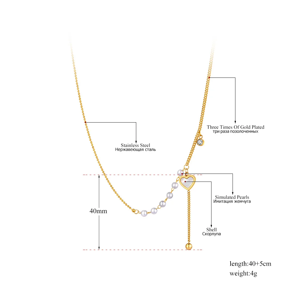 Женская цепочка с подвеской в виде сердца, из нержавеющей стали