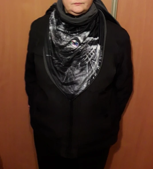 вообще не соответствует фото. кот настолько крупный, что его просто не видно когда платок одевается. На фото продавца он раза в три меньше. качество полностью устроило, но рисунок расстроил хотела поставить 3 звезды... но может это именно эта модель не удачная....