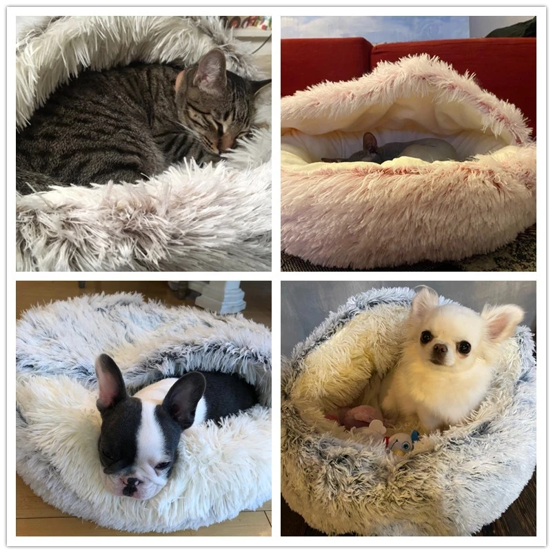 Зимний кошка кровать круглые плюшевые теплые мягкие кровати для дом...
