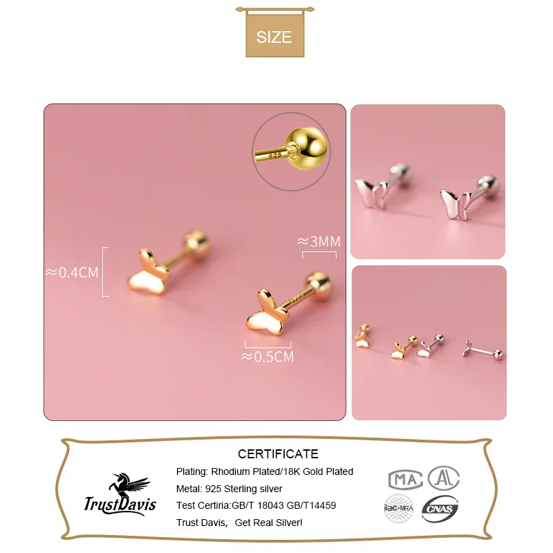 Серьги-гвоздики TrustDavis из серебра 925 пробы для женщин, серьги ...