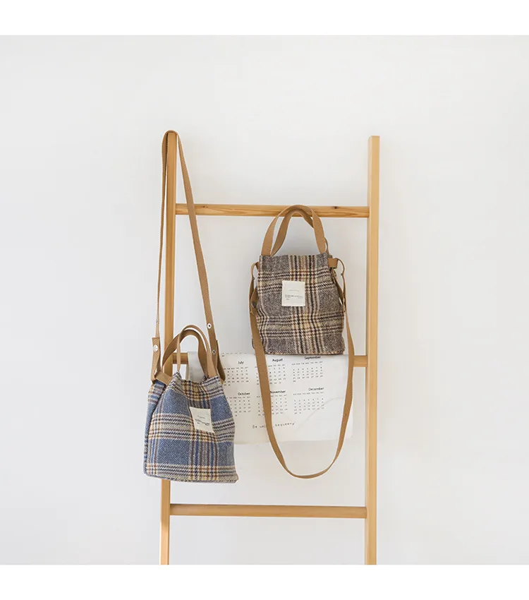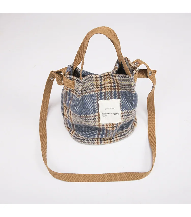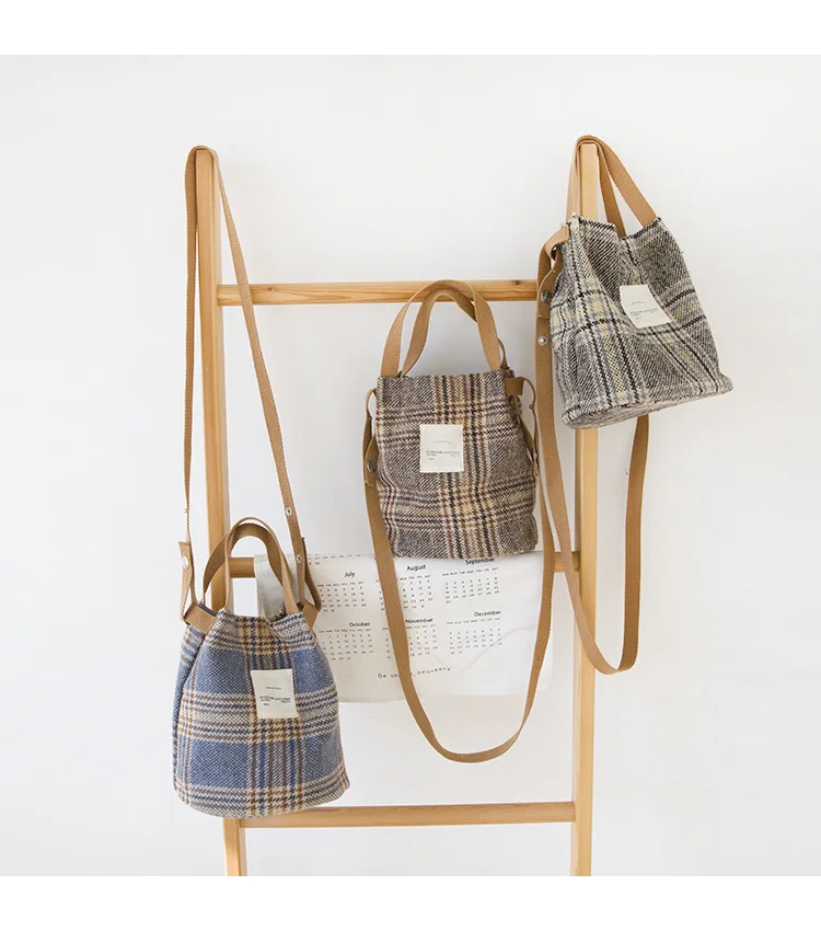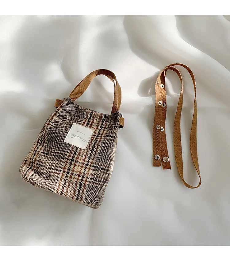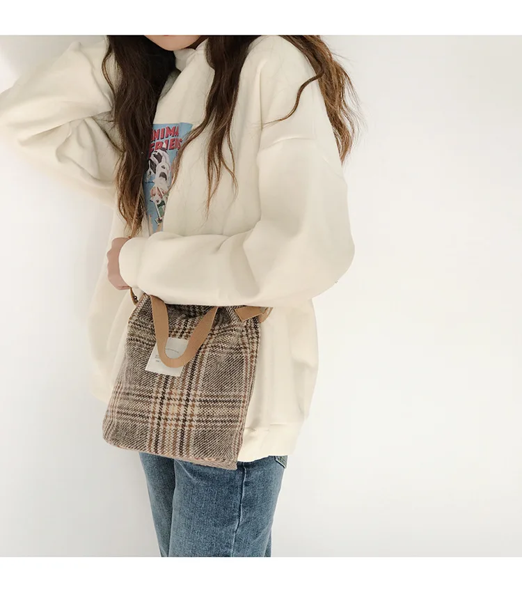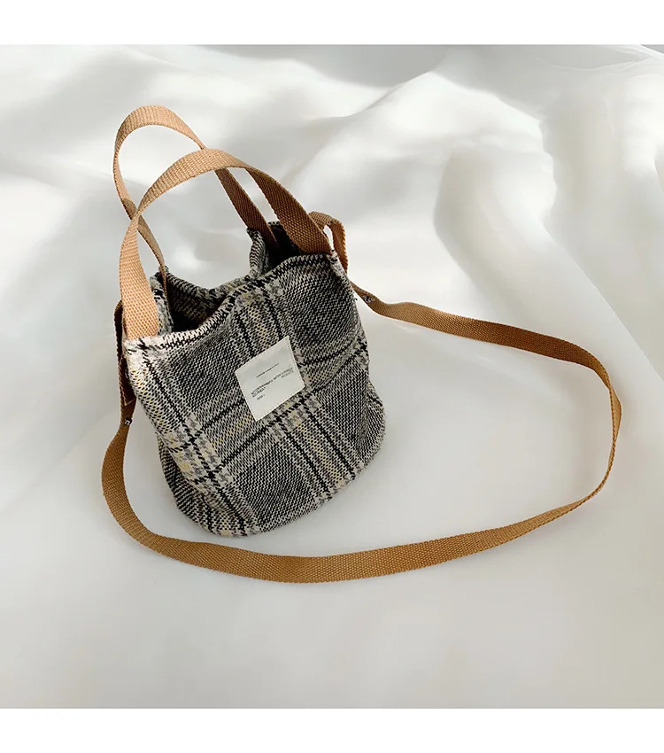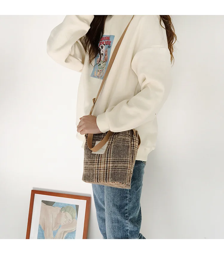 Женская маленькая сумка на плечо, шерстяная холщовая хлопковая сумочка-тоут, повседневный винтажный клетчатый кошелек для девушек