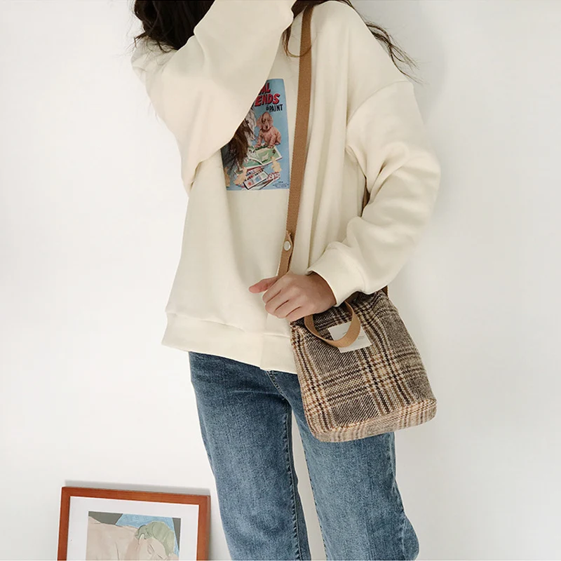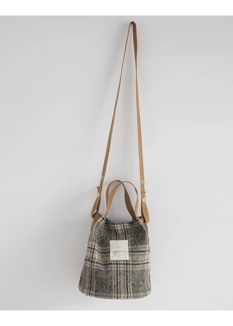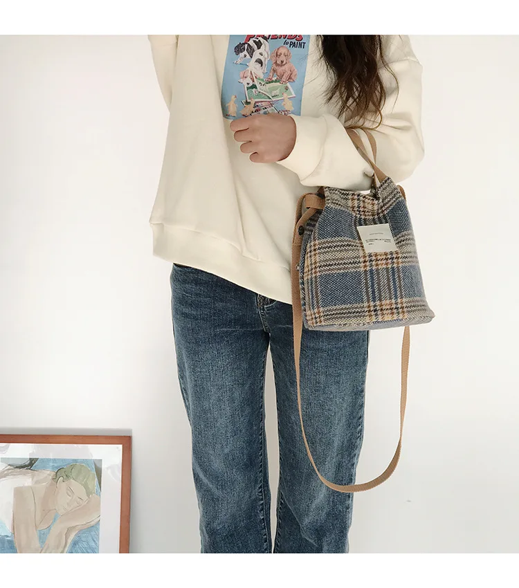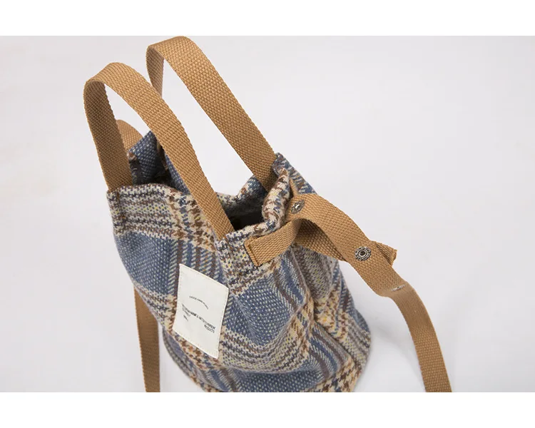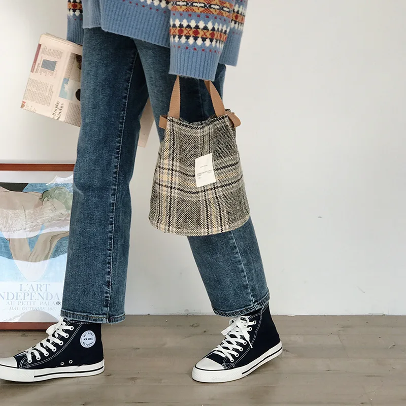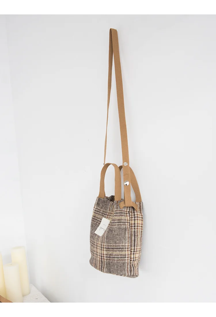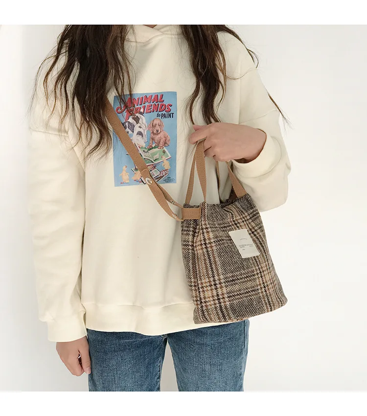 Женская маленькая сумка на плечо, шерстяная холщовая хлопковая сумочка-тоут, повседневный винтажный клетчатый кошелек для девушек