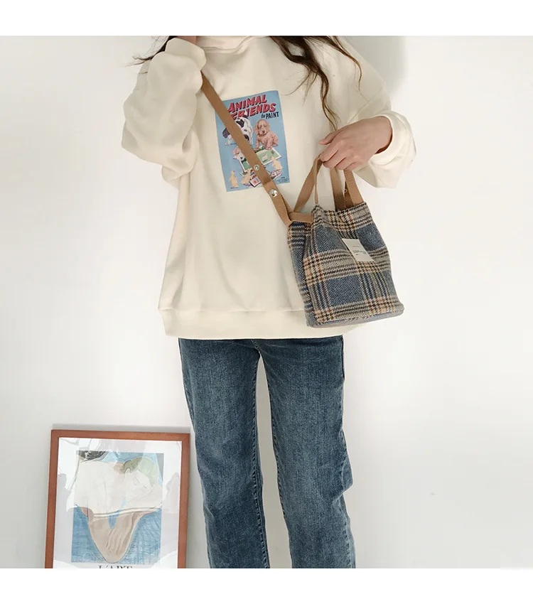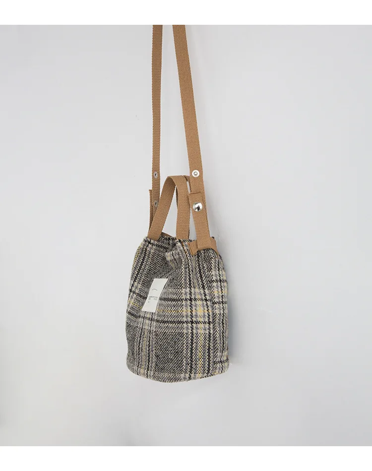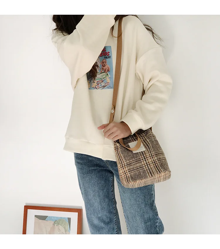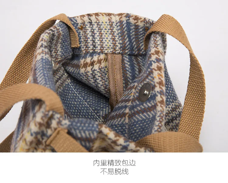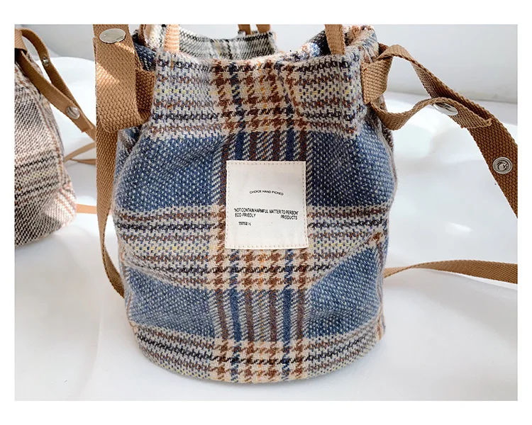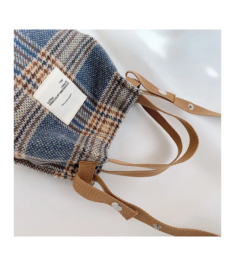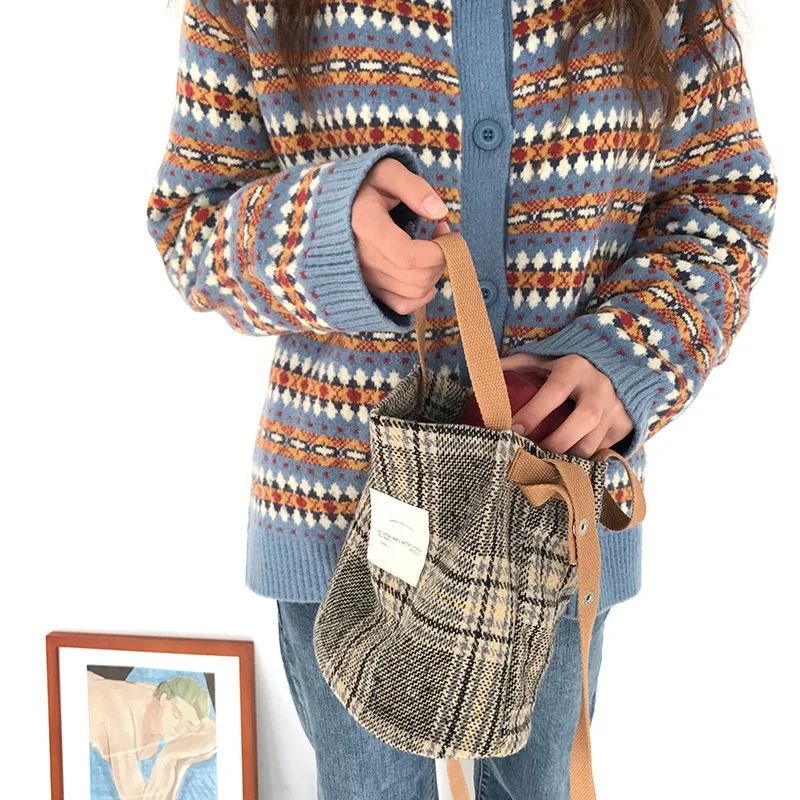 Женская маленькая сумка на плечо, шерстяная холщовая хлопковая сумочка-тоут, повседневный винтажный клетчатый кошелек для девушек