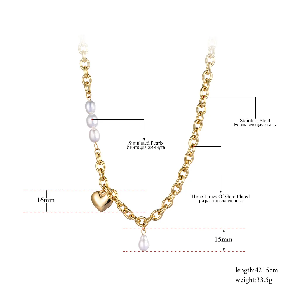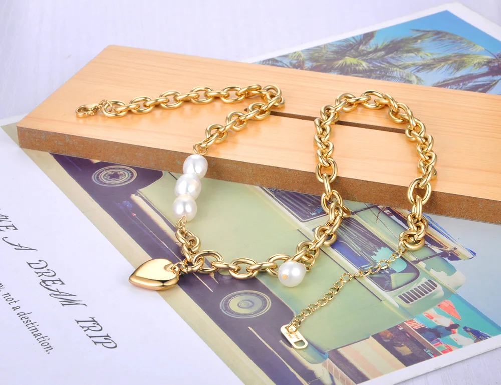 Цепочка Lokaer из нержавеющей стали с подвеской в виде сердца, 18 карат