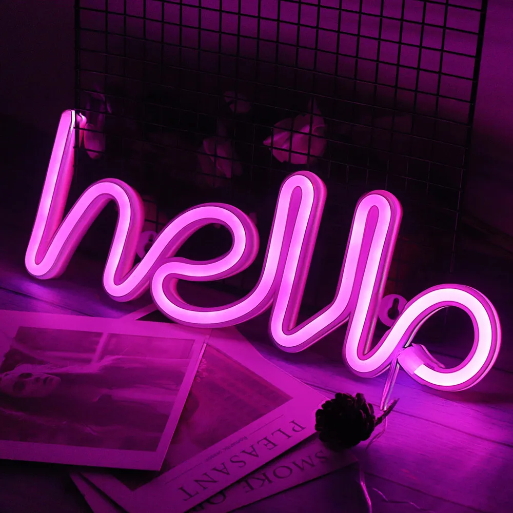 Неоновая светодиодная вывеска с надписью Hello, неоновые украшения для свадьбы, праздника, Рождества, вечеринки, свадьбы, домашний декор для стен, неоновая лампа, подарки
