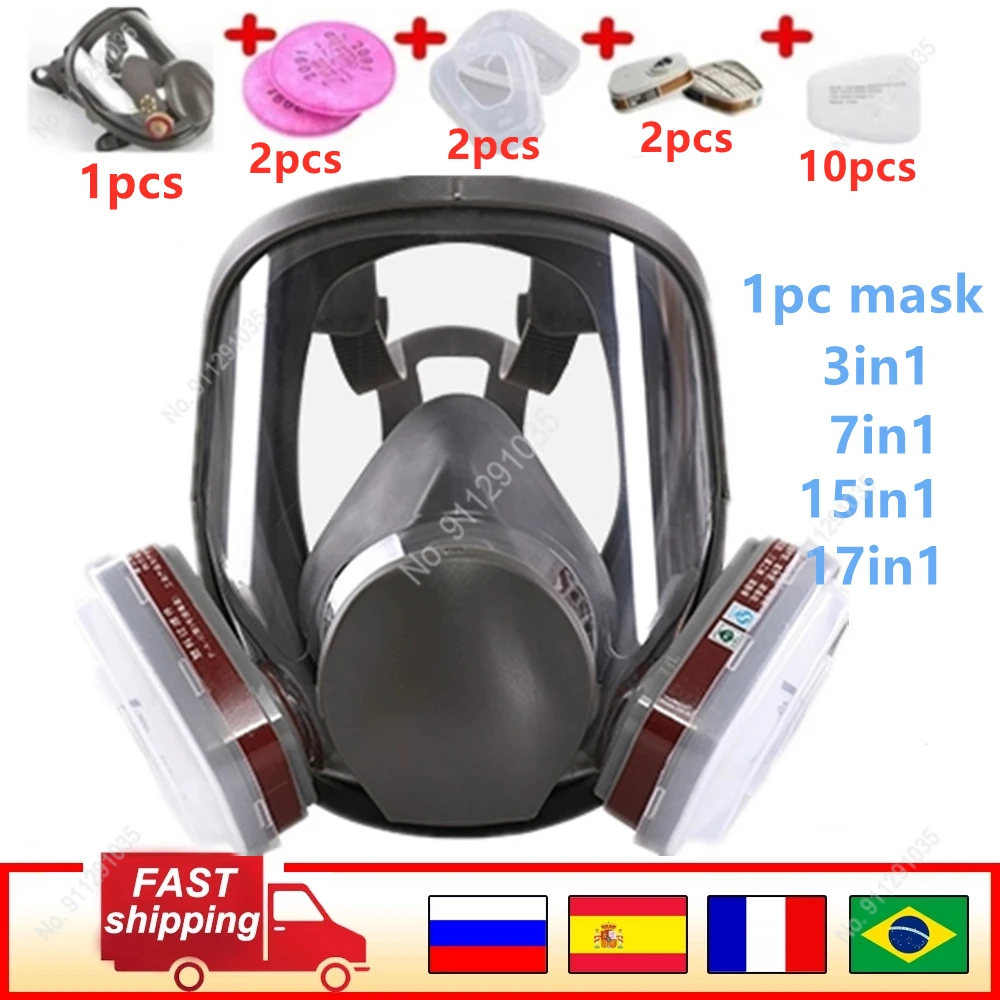 Маска газовая 7 в 1, маска-респиратор для покраски, широкое поле зрения, маска на все лицо, респиратор, распылительная краска, силиконовая маска 6800