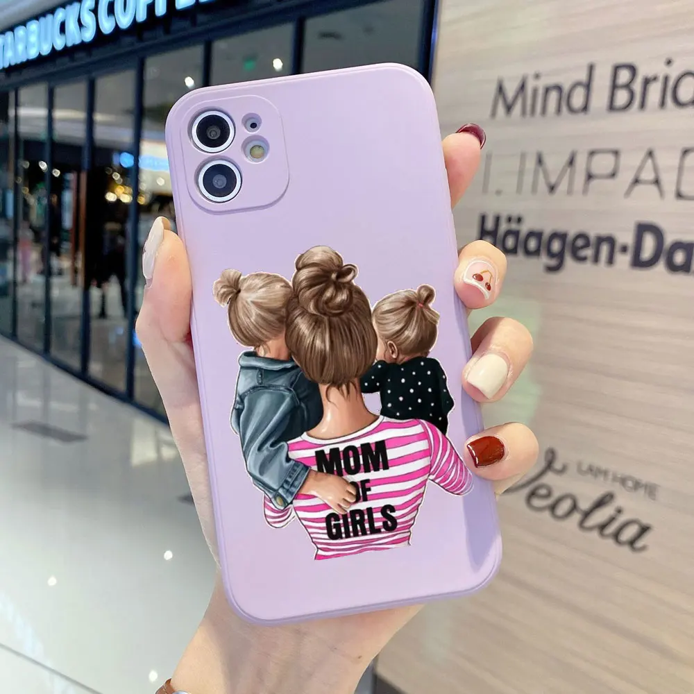 Новогодние подарки, чехол для телефона мама-девочка Super mom для iPhone 12 PRO 13 Pro 11 PRO MAX XR 6s 7 8 Plus X XS MAX SE, мягкий чехол из ТПУ