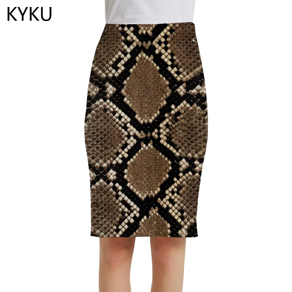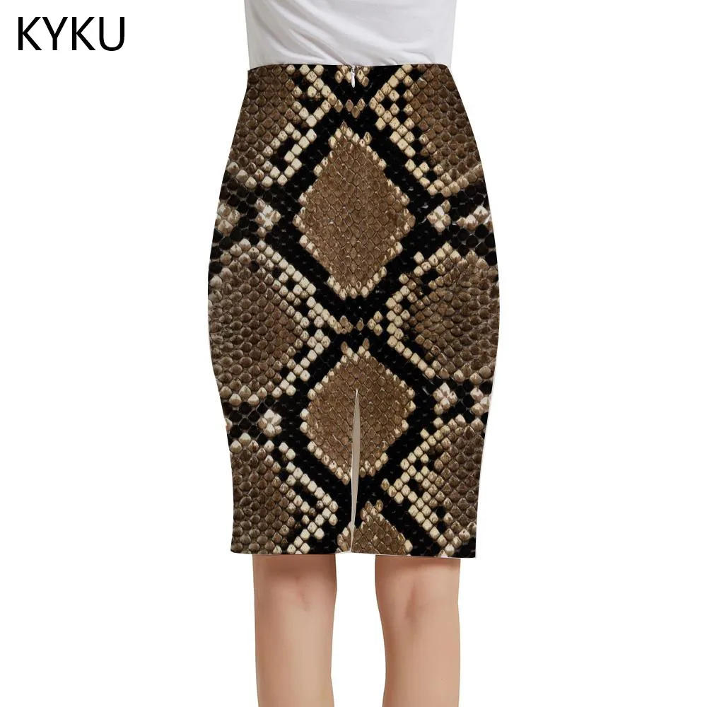 Женская юбка в стиле Харадзюку KYKU, летняя вечерние ка из змеиной кожи, с абстрактным принтом