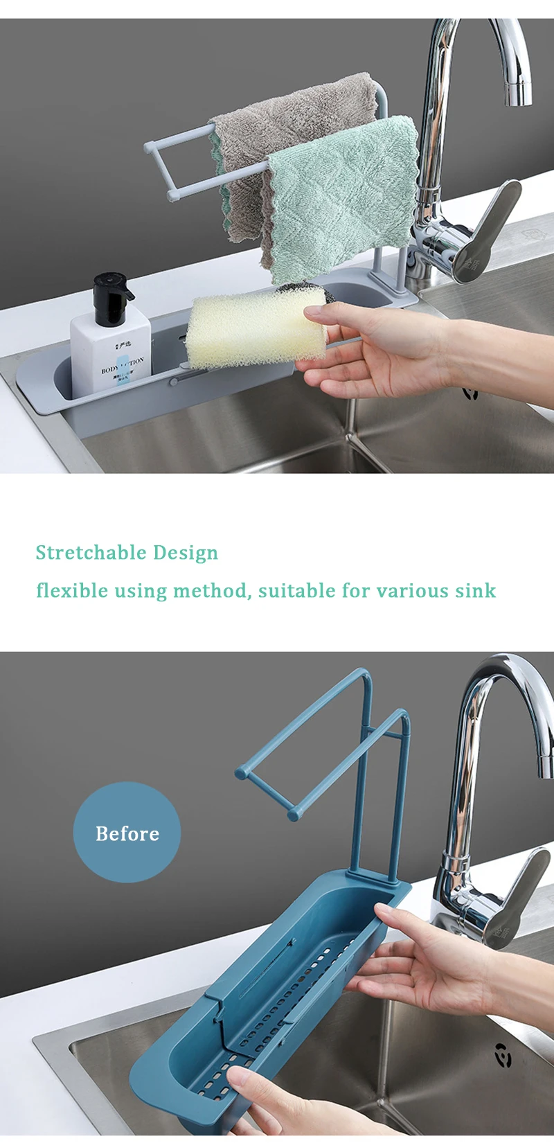 Телескопическая стойка для раковины, держатель для мыла, губки, органайзер, кухонные регулируемые раковины, сушилка, корзина для хранения, кухонные аксессуары