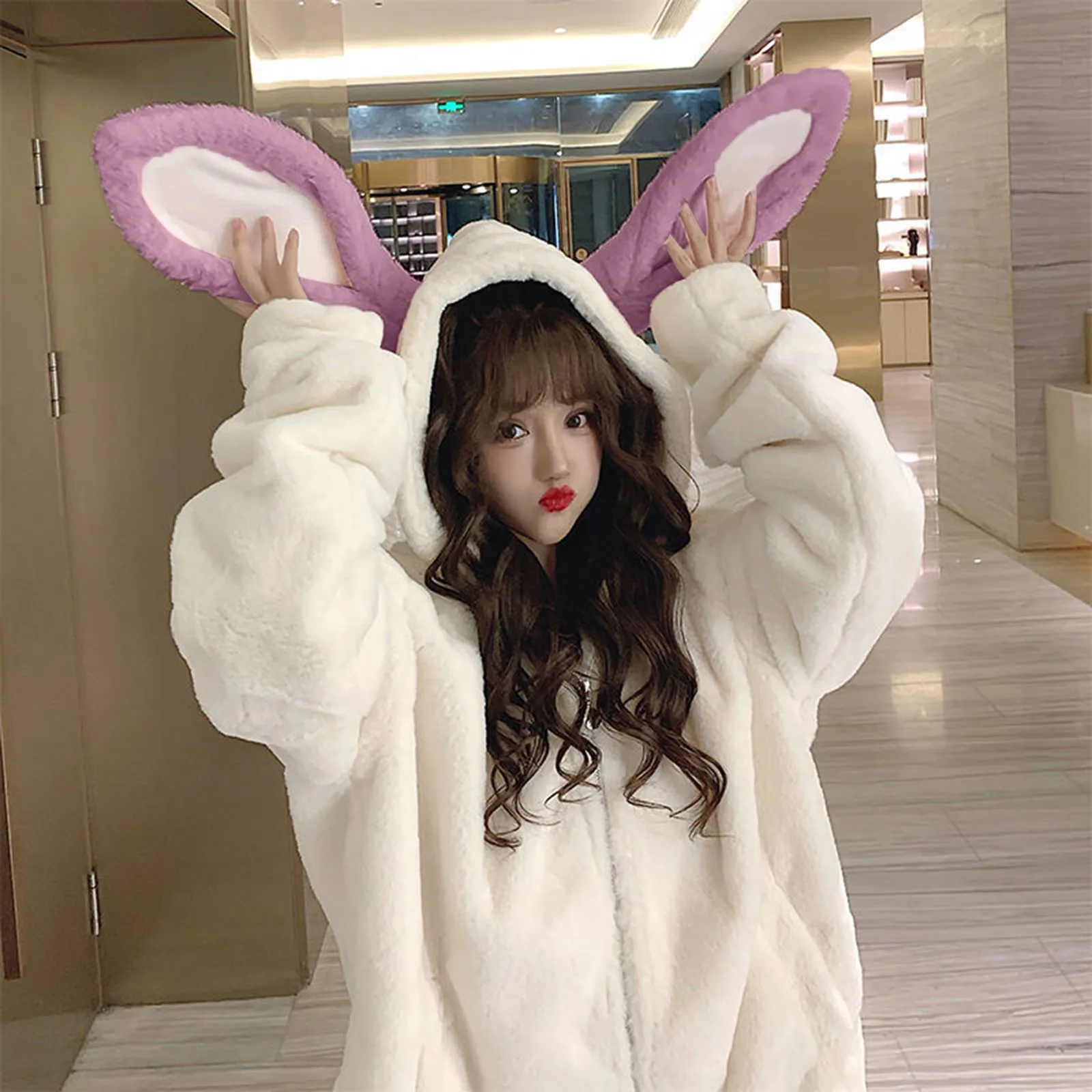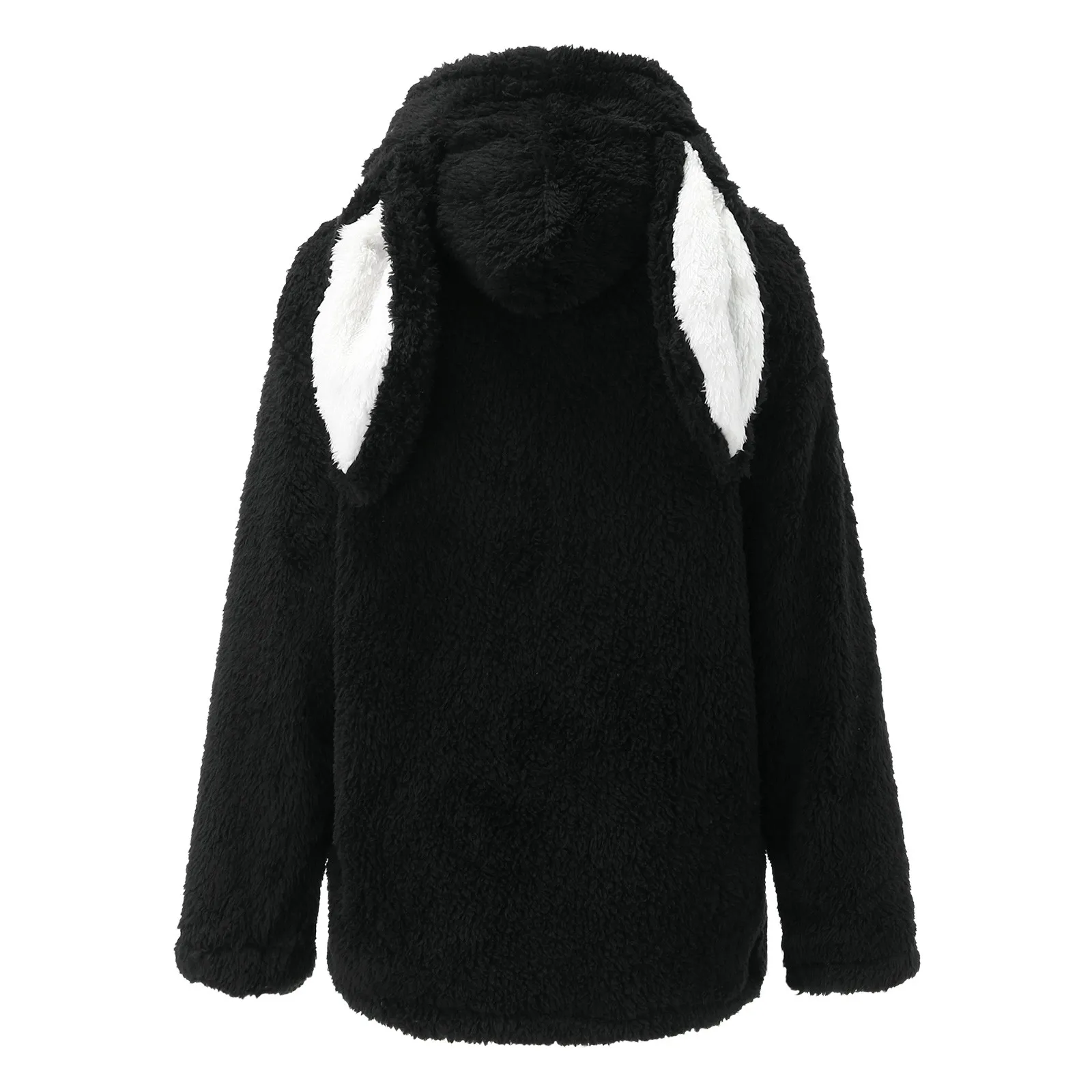 Осенне-зимние женские толстовки готика, Харадзюку парные с капюшоном с милыми кроличьими ушками черные женские милые корейские свободные теплые плюшевые пальто #2