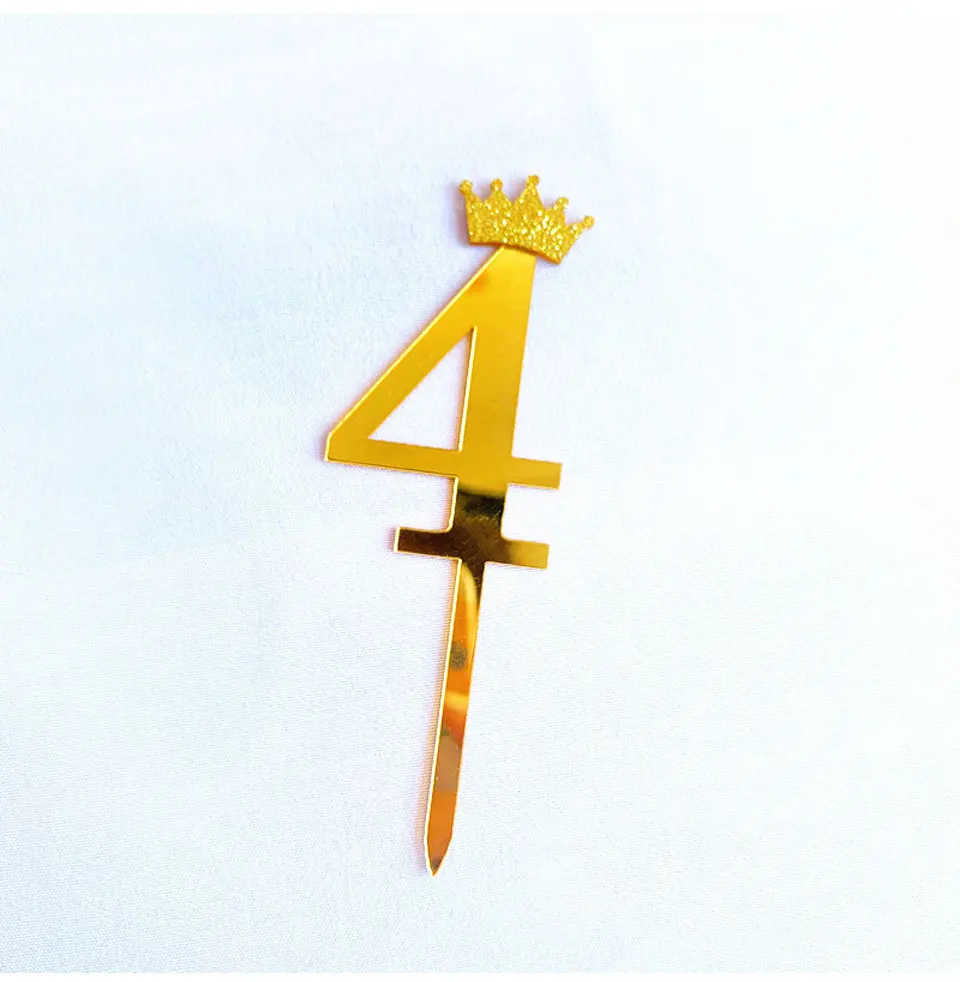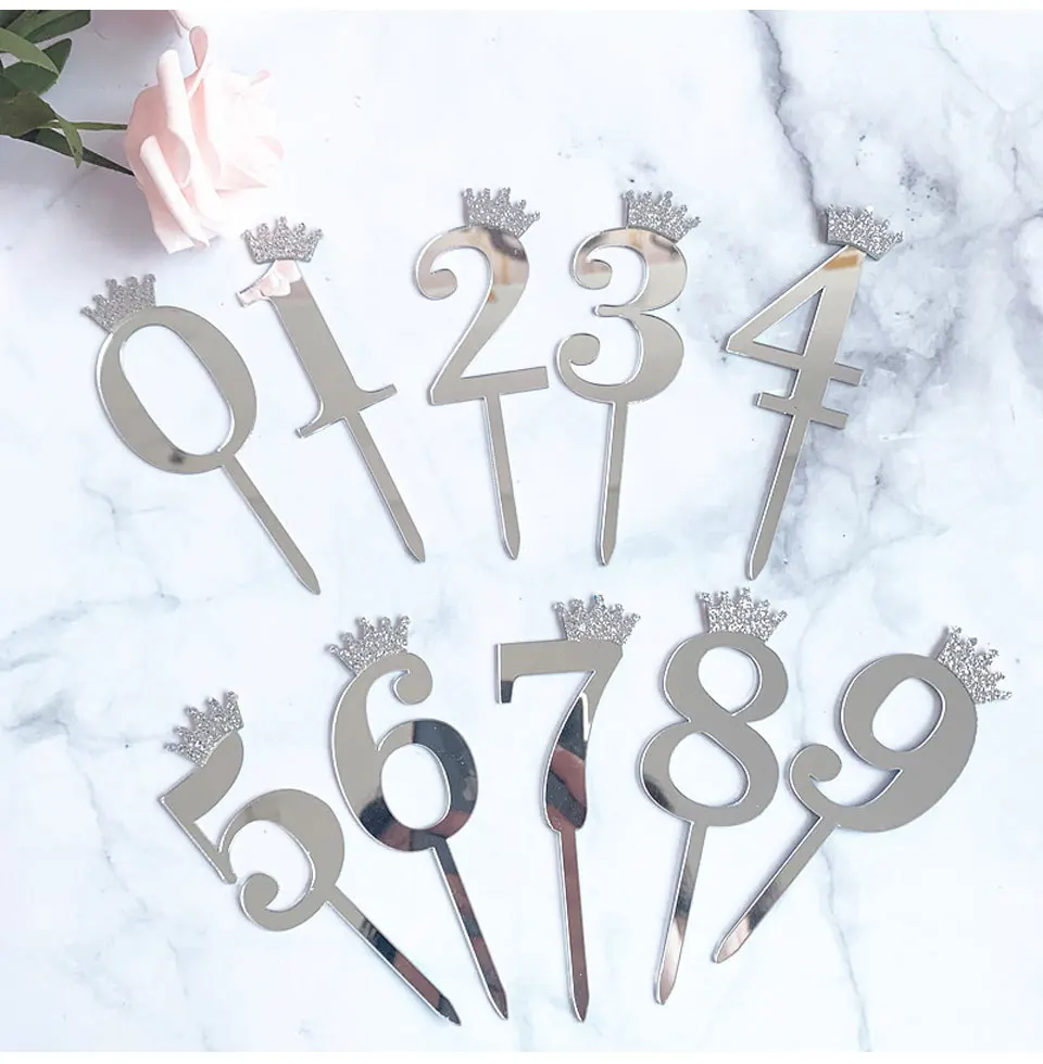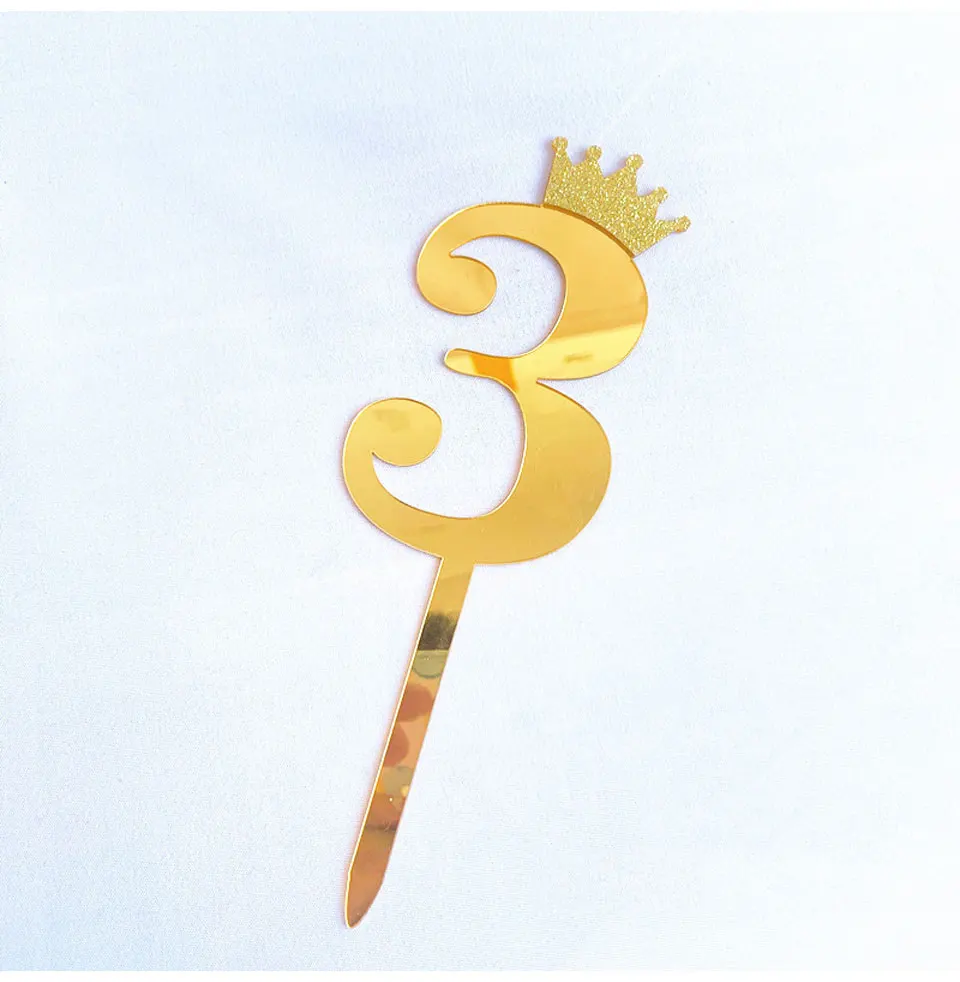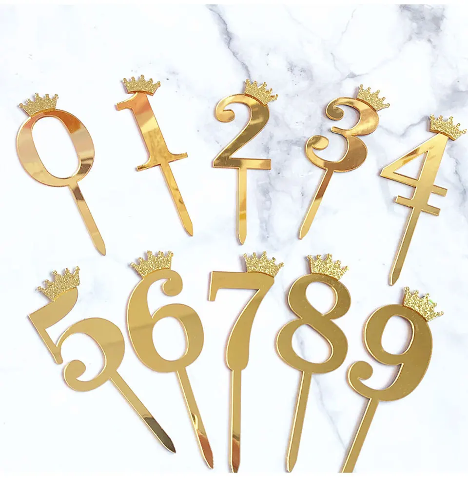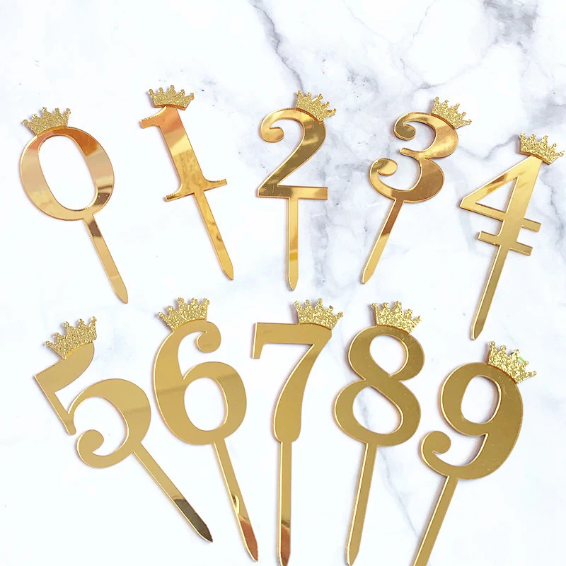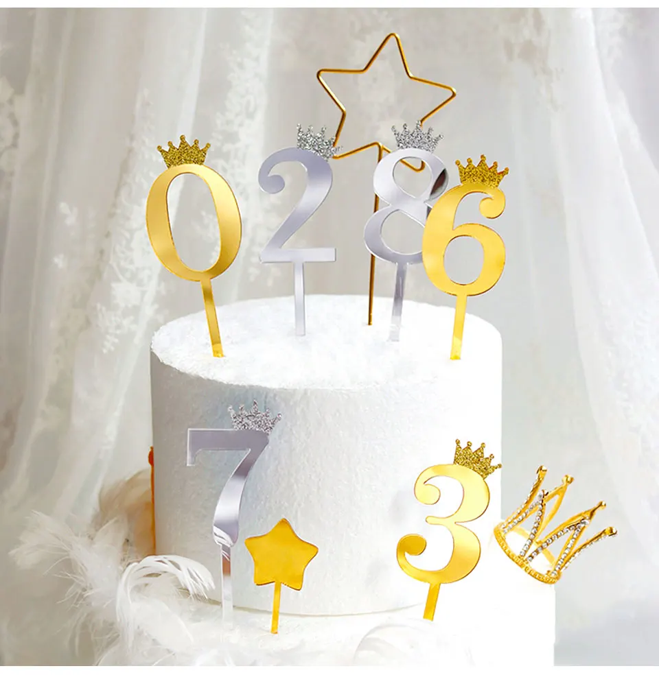Цифра, топпер для торта, золотая, серебряная, Акриловая Корона, 0-9 цифр, вечерние рождения, вставка для торта, украшение для свадебного торта, торты, десертный Декор