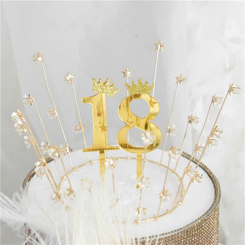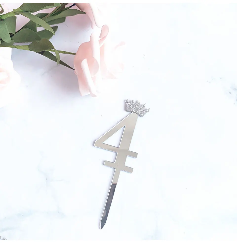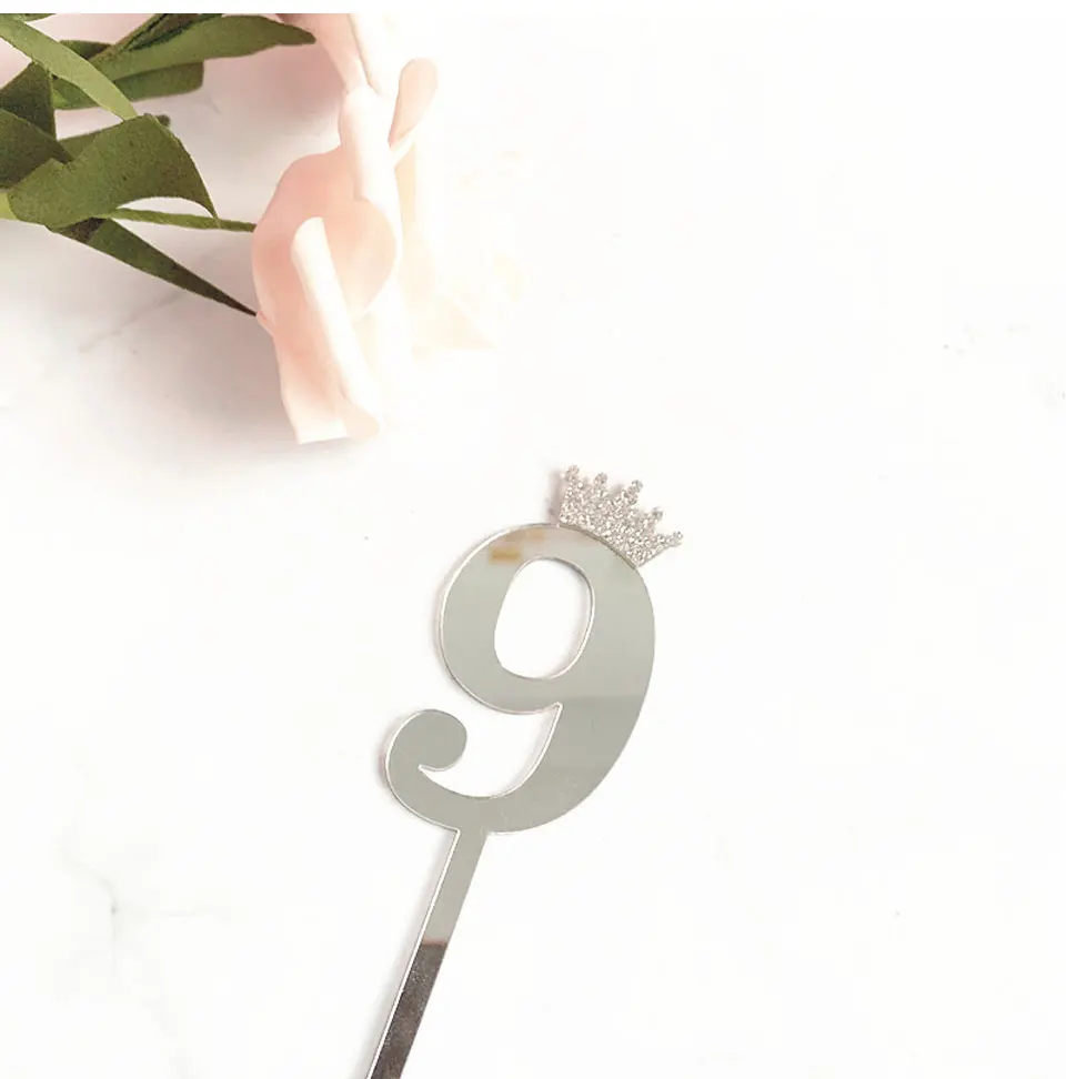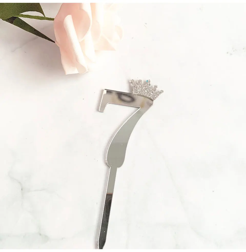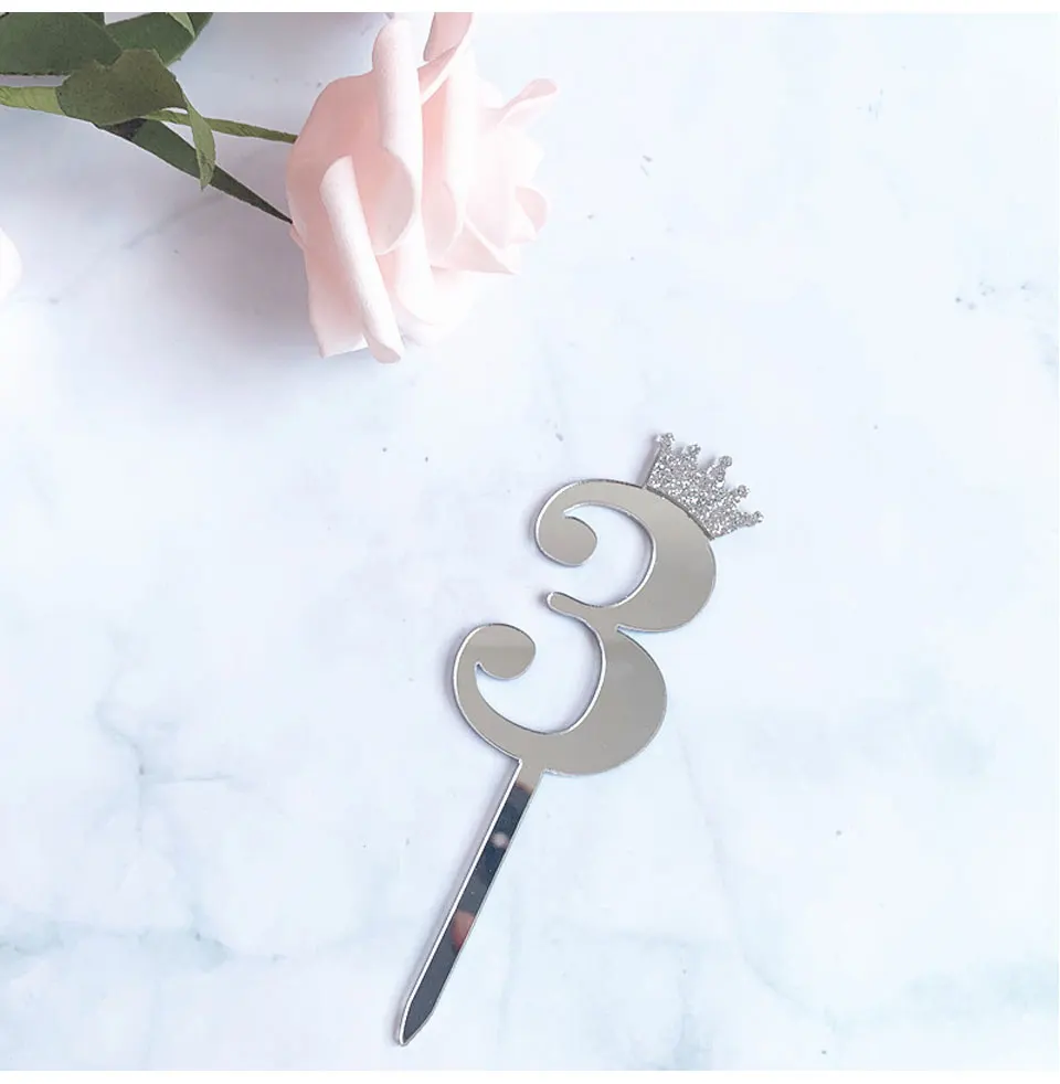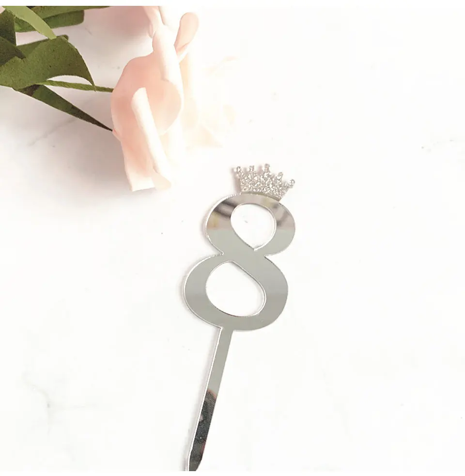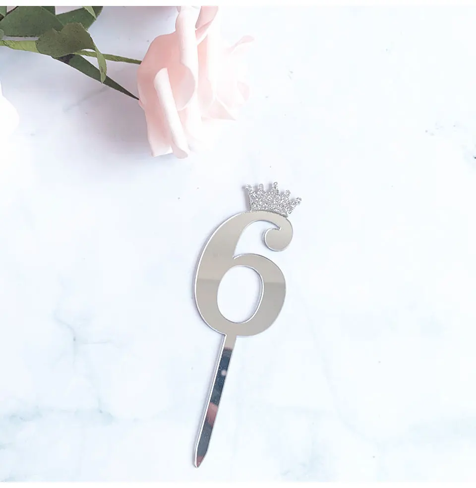 Цифра, топпер для торта, золотая, серебряная, Акриловая Корона, 0-9 цифр, вечерние рождения, вставка для торта, украшение для свадебного торта, торты, десертный Декор