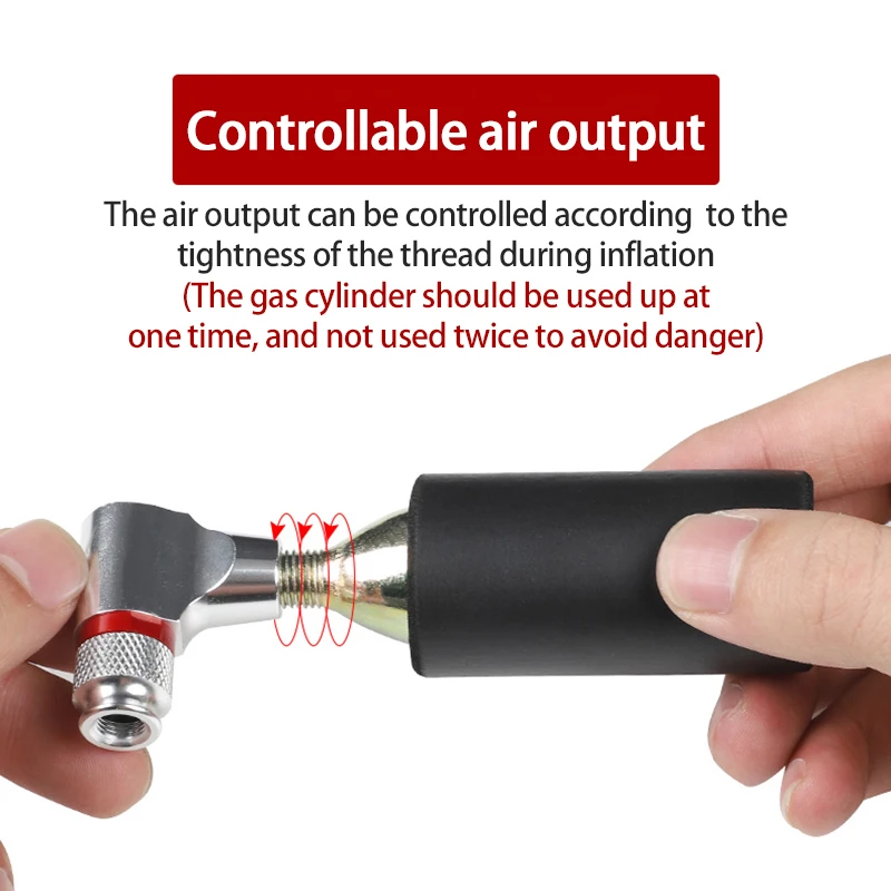 Во время надувания выход воздуха можно контролировать в соответствии с герметичностью резьбы (газовый баллон следует использовать за раз и нельзя использовать дважды, чтобы избежать опасности)