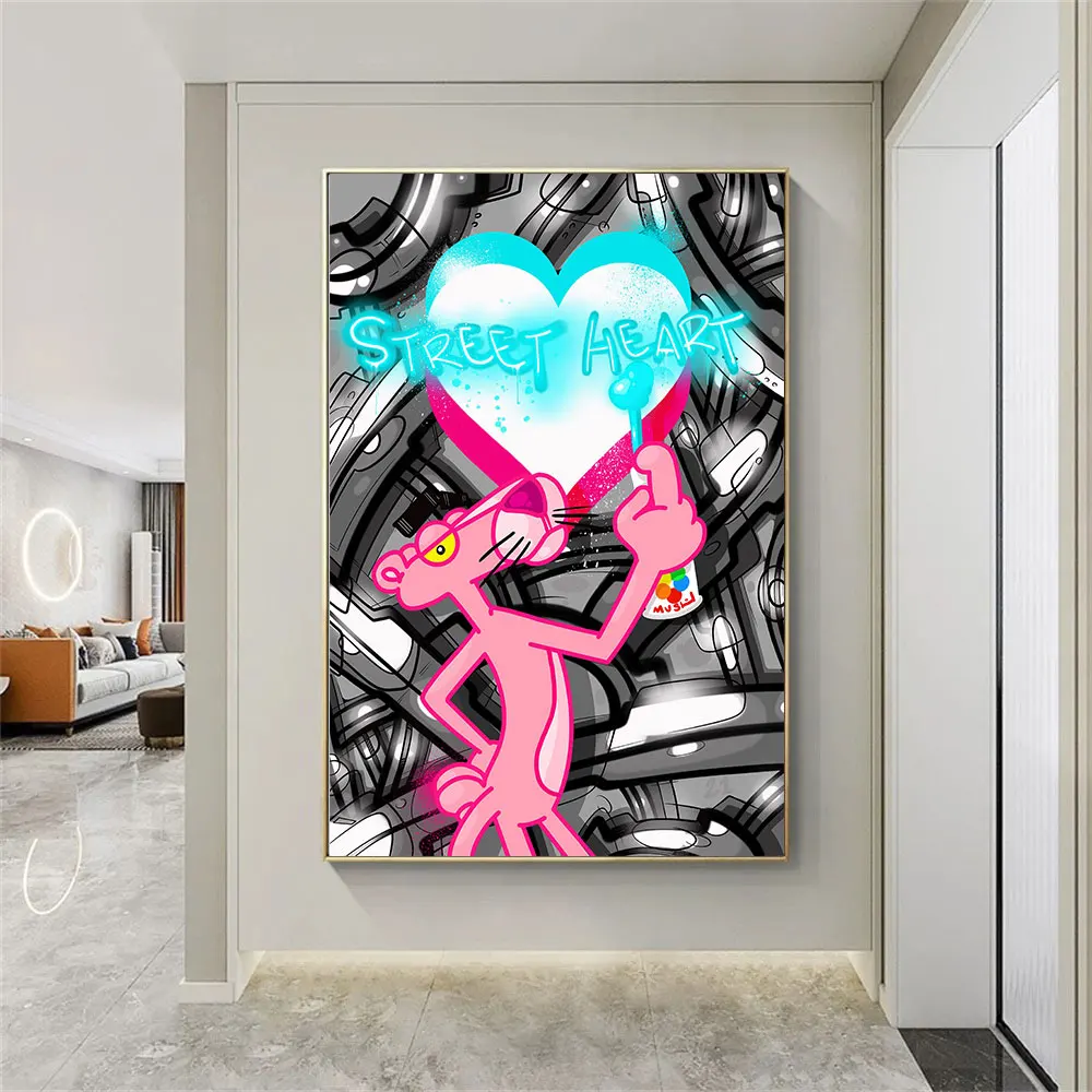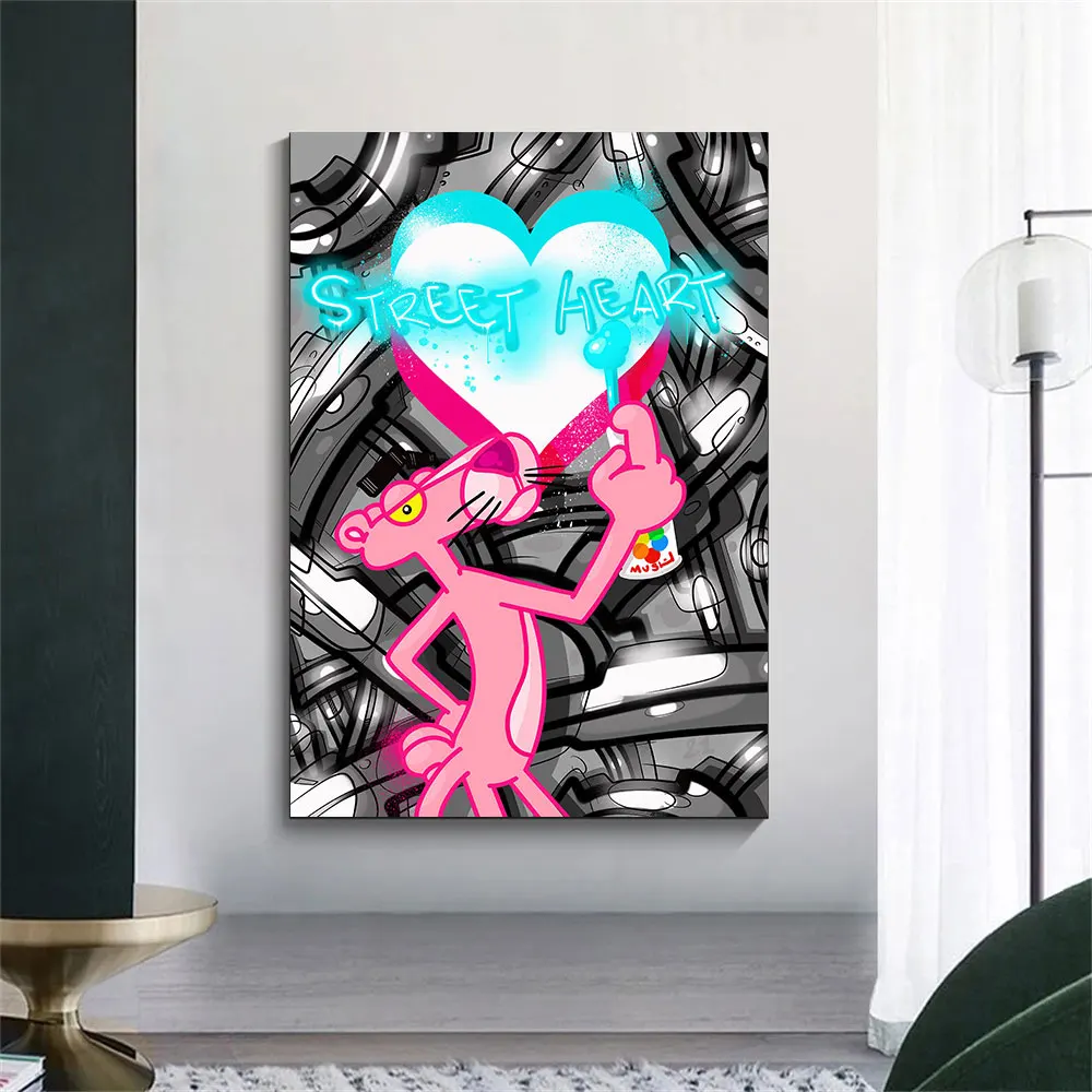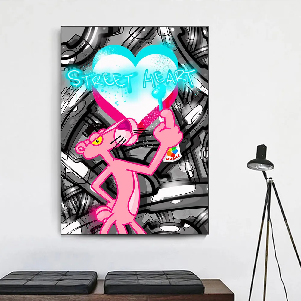 Мультфильм Розовая пантера брызги уличное искусство поп-плакат настенные художественные принты на холсте картина для гостиной домашний декор лучший подарок
