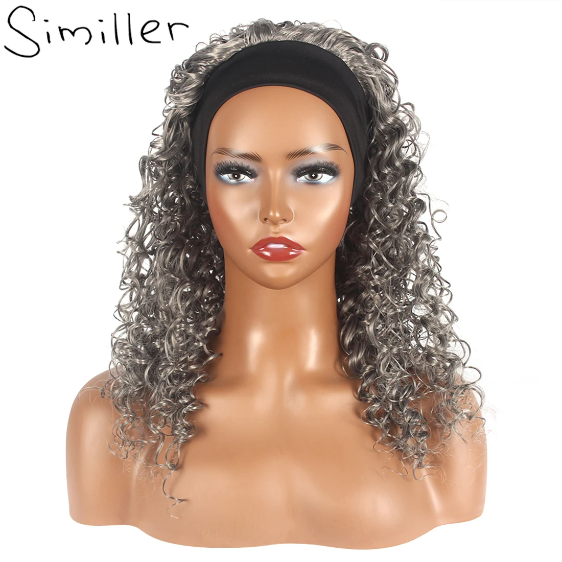 Similler Синтетические афро вьющиеся серые головные парики для женщин Средний Прикрепленный манекен для шарфа парика 16 дюймов