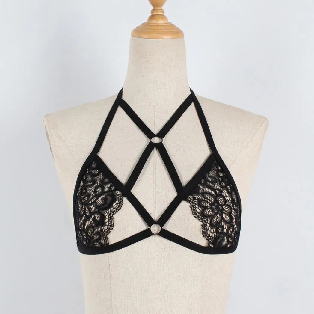 Женский сексуальный кружевной бандажный бюстгальтер-клетка, ажурное нижнее белье, корсет, готический бандаж, топ пуш-ап на бретелях, летнее нижнее белье 2021