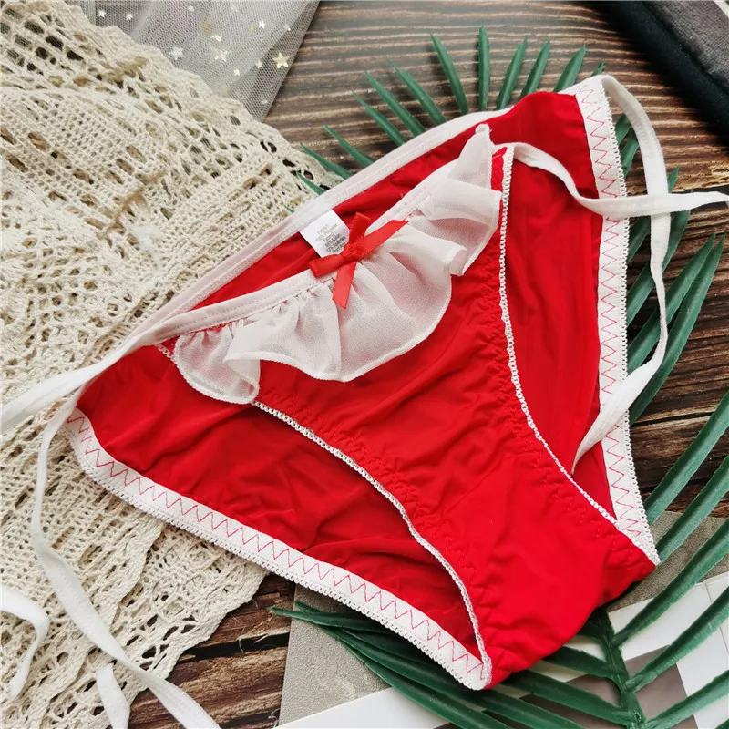 Новые трусики из ледяного шелка в японском стиле, сексуальные кружевные трусики, модные женские трусики с бантом, женское нижнее белье