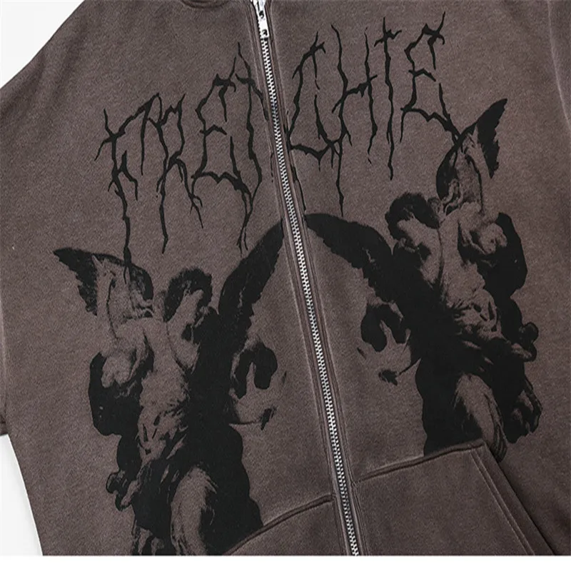 Толстовка МужскаяЖенская Y2K, с капюшоном на молнии, с принтом анге...