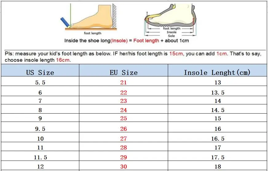 Дорогие друзья:Поскольку все размеры детской обуви отличаются, при заказе детской обуви вы должны соответствовать нашим размерам и внутренней длине. Согласно длине стельки. (Длина стельки = длина стопы 1 см/1,5 см), так как размер не имеет отношение к Стандартный, Просто удобно для вас сделать заказ. Удобная длина стопы составляет около 1 см. И из-за длительного времени доставки авиа-отправление Почты Китая и ребенок быстро вырастет, пожалуйста, выберите обувь большего размера для вашего ребенка. Пожалуйста, выберите правильный размер. Вся обувь будет отправлена с пузырчатыми сумками, без коробок!