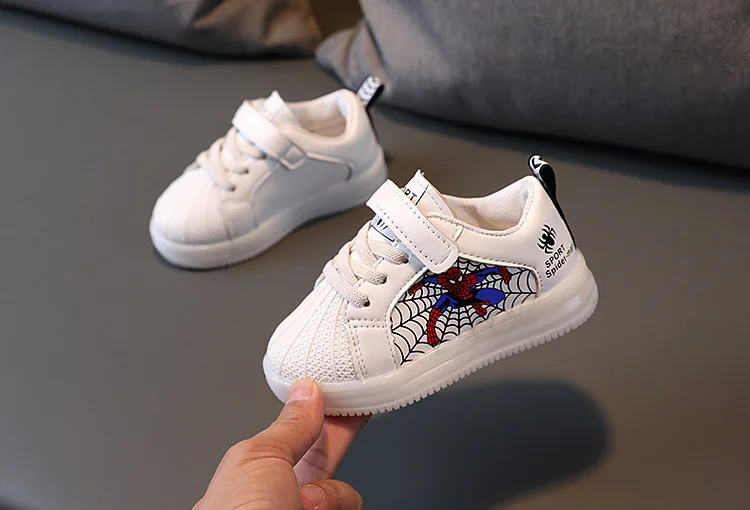Детская повседневная обувь светильник кой, кроссовки для мальчиков и девочек, Весенняя спортивная обувь с мультяшным человек-пауком светильник кой, модные светящиеся ботинки