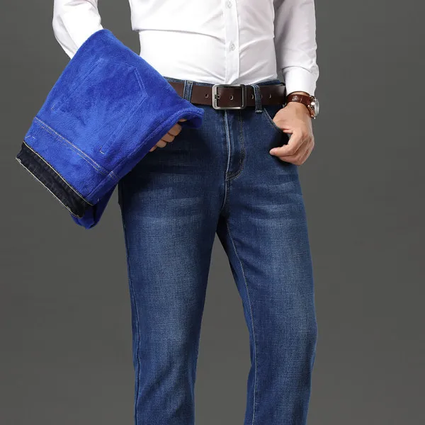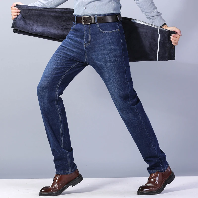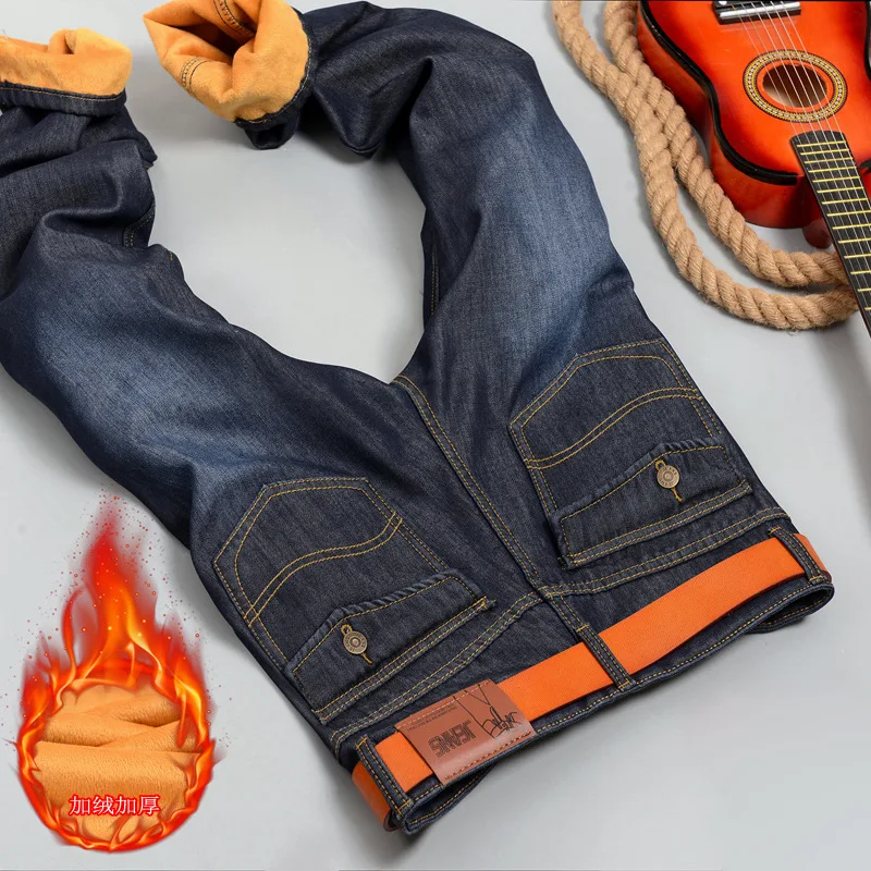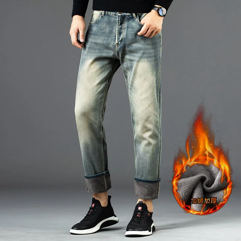 23 модели зимние джинсы мужские джинсы облегающие тянущиеся толстые брюки теплые джинсы повседневные флисовые брюки мужская одежда