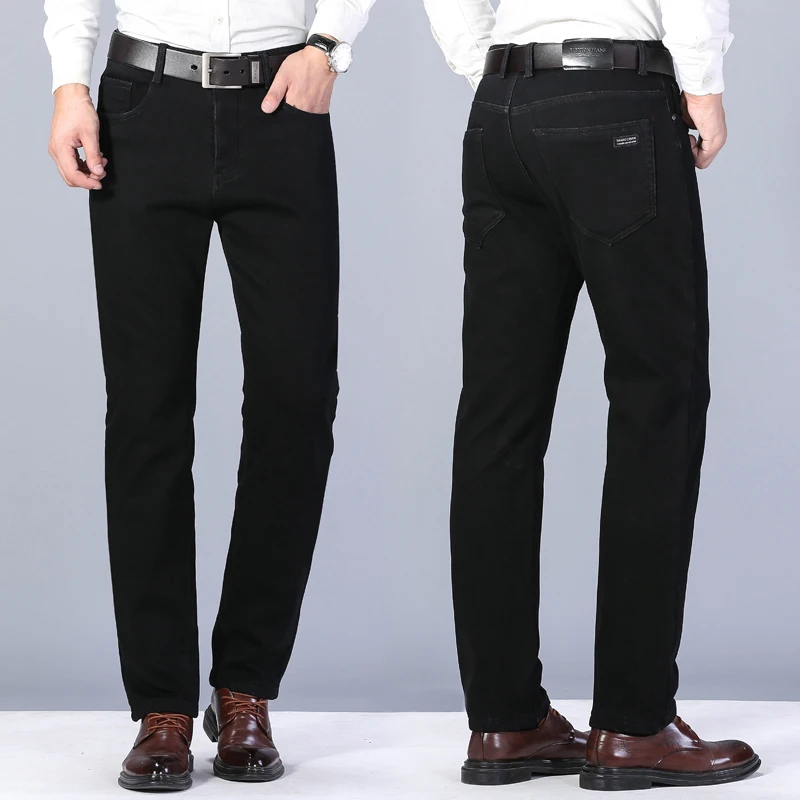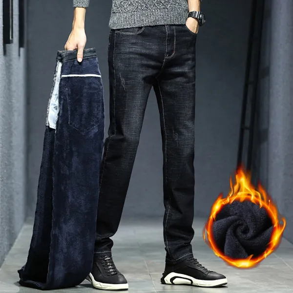 Мужские зимние черные джинсы для мужчин, флисовые плотные теплые дж...