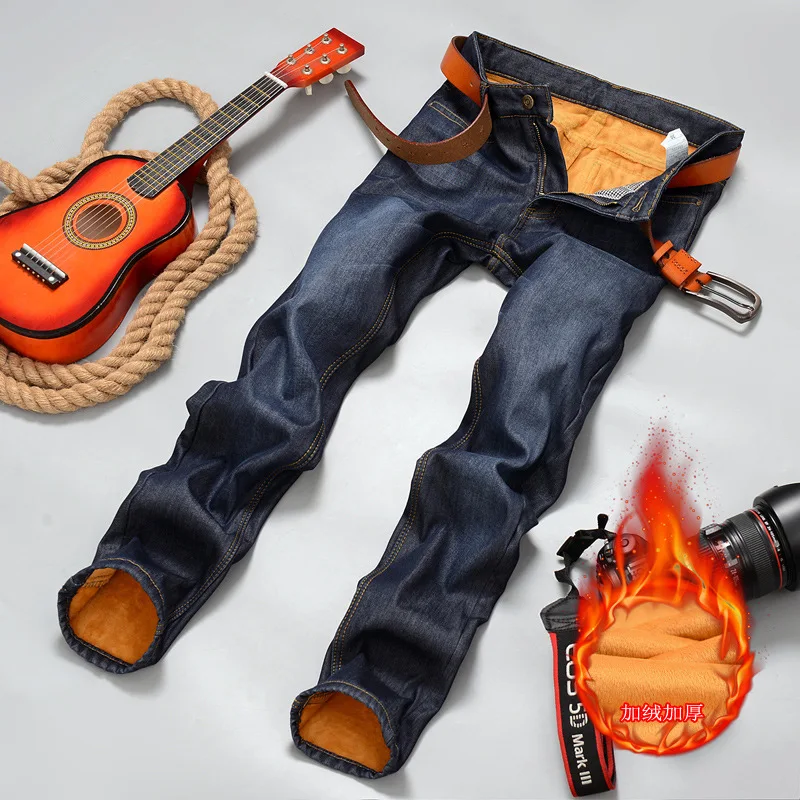 Мужские утепленные прямые джинсы на флисе, 23 модели Осень-зима
